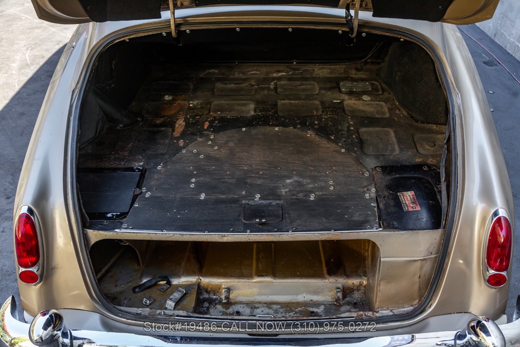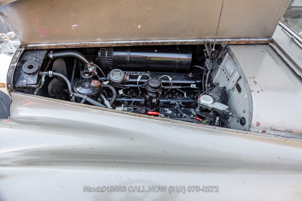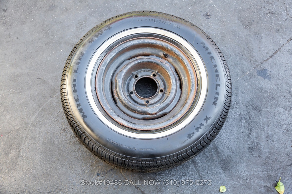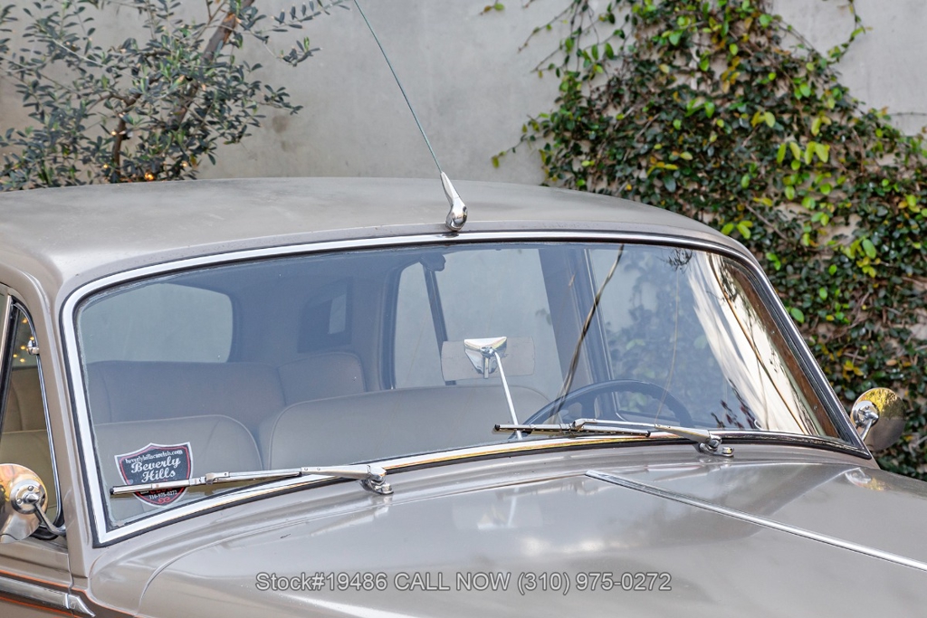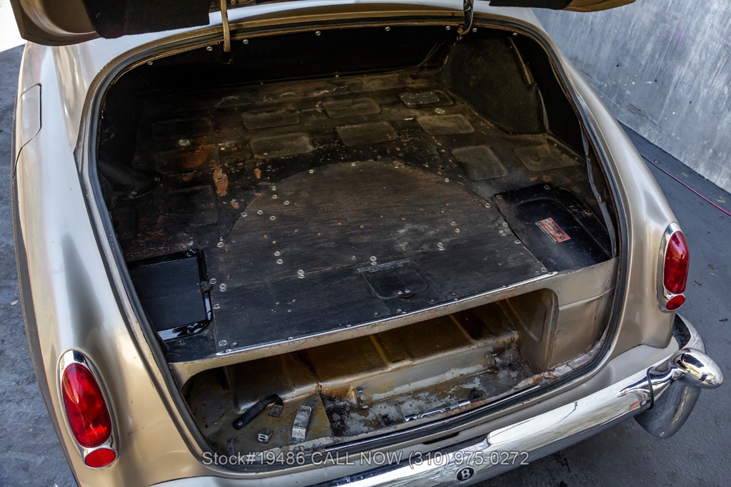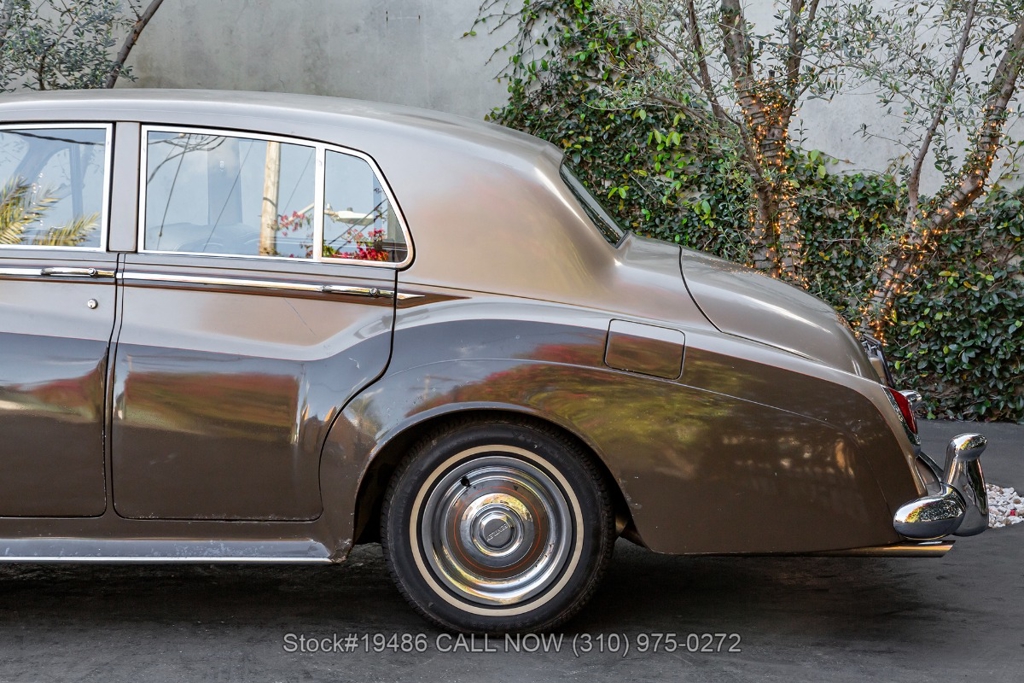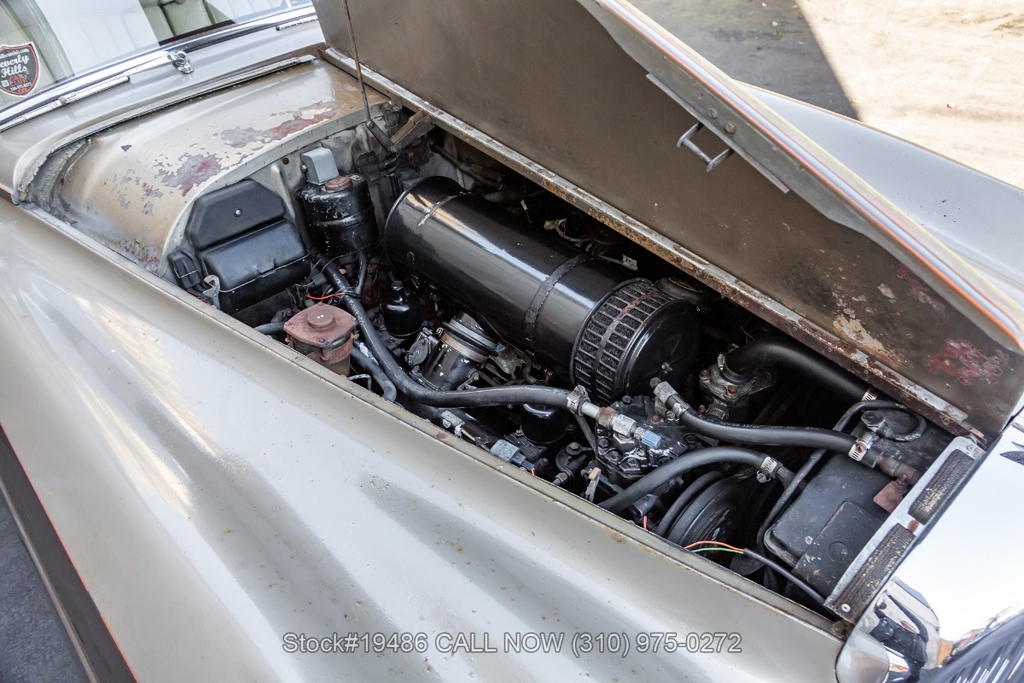 Equipped with an automatic transmission with steering-column control and powered by a straight-six engine featuring dual SU carburetors. Exterior details include a single exhaust outlet, chrome trim, chrome bumpers with overriders, Lucas front fog lights, a chrome radiator grille, the iconic Flying B hood ornament, 15-inch steel wheels, white-line tires, and Bentley hubcaps. Additional equipment includes a jack and a full-size spare tire perfectly fitted in the trunk.
