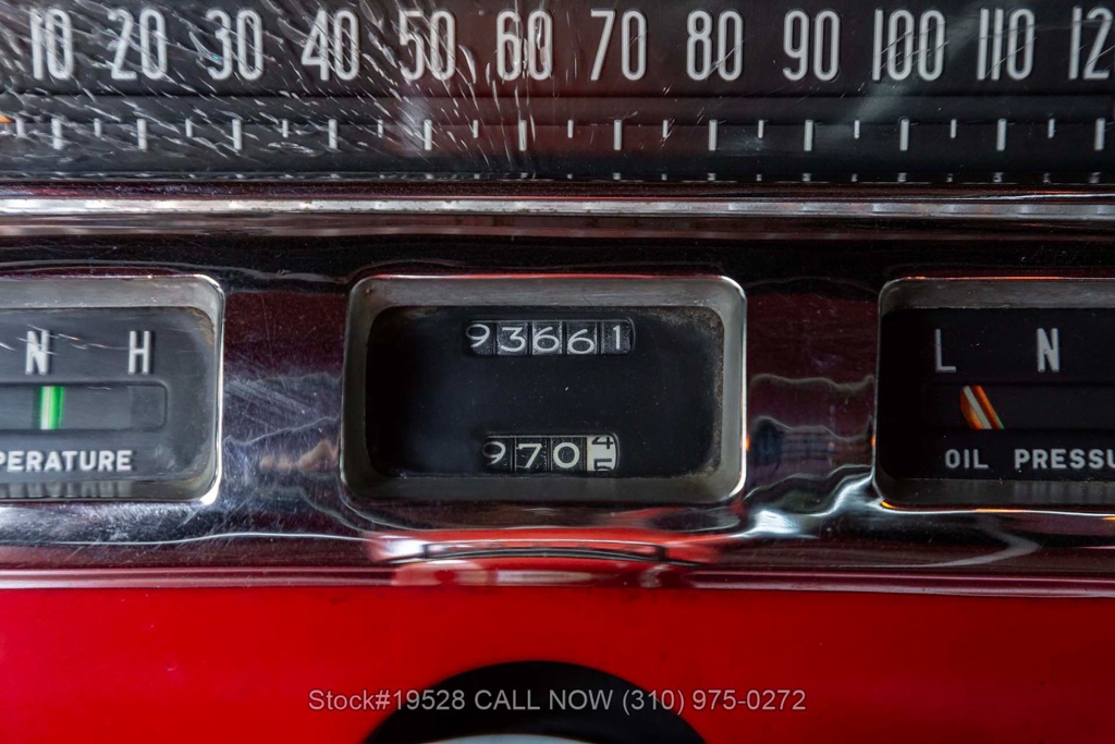 Power comes from Buick's well-known "Nailhead" V8 paired with an automatic transmission. Additional equipment includes chrome bumpers, the signature Sweepspear side molding, dual exhaust outlets, chrome hubcaps, and wide whitewall tires. Inside, the cabin features front and rear bench seating upholstered in Red Cordaveen, a three-spoke steering wheel with horn ring, vent windows, an analog clock, glove box, and a Sonomatic push-button radio. The trunk houses a jack along with a full-size spare tire.