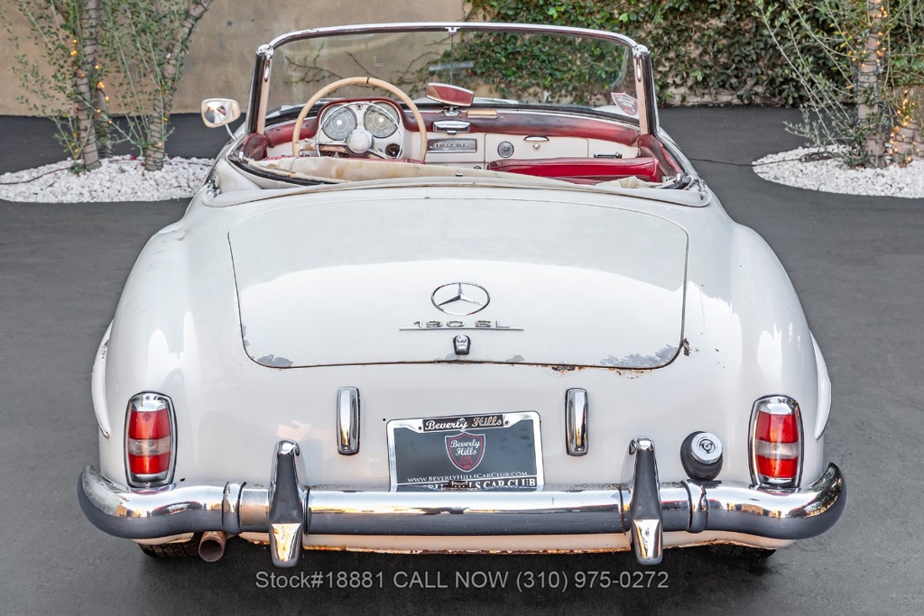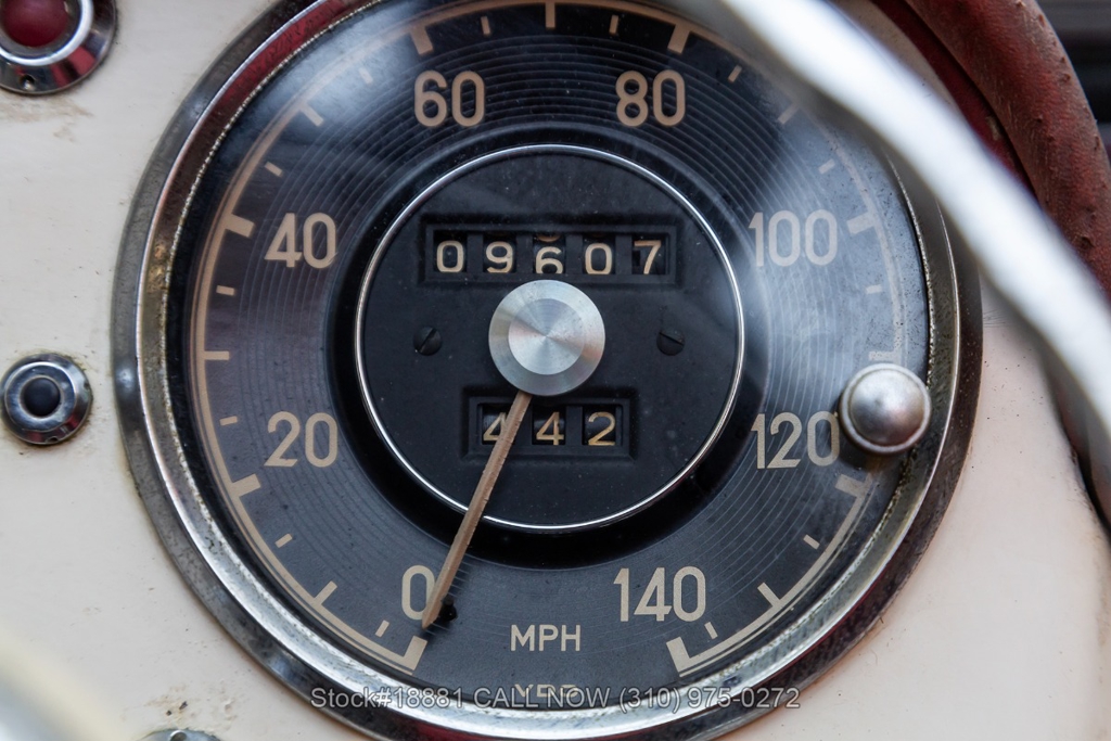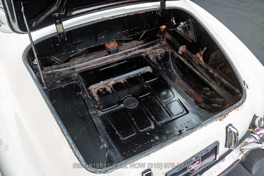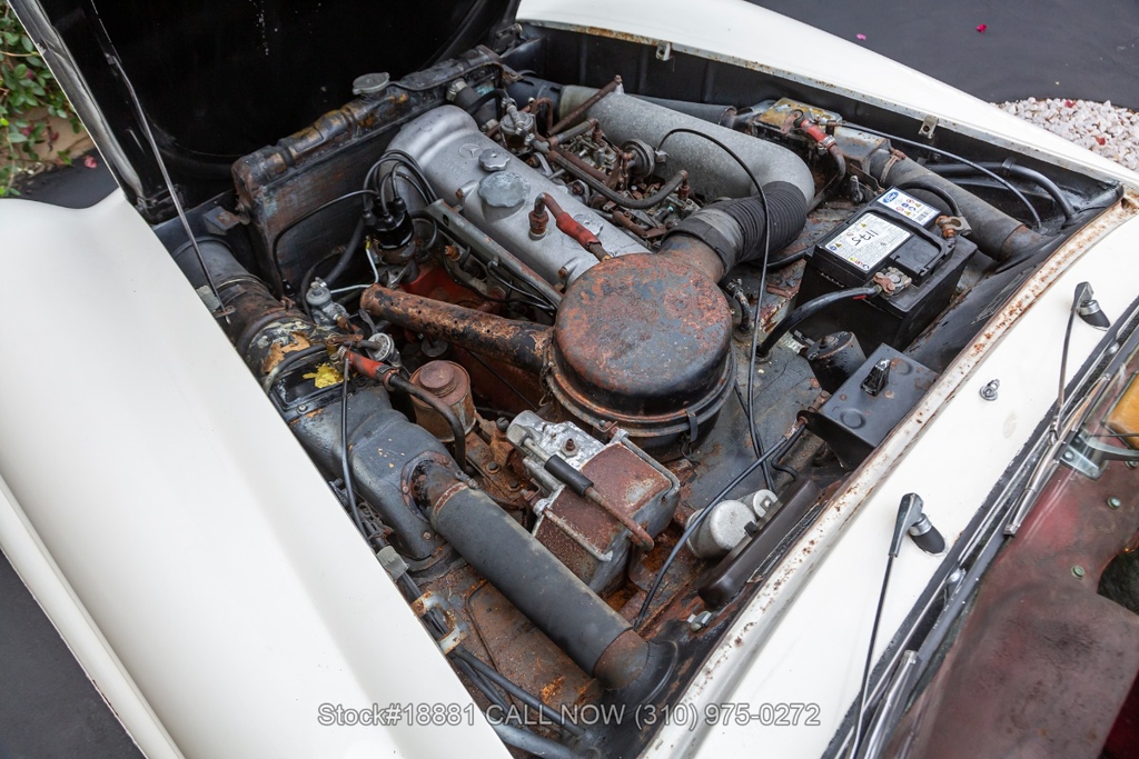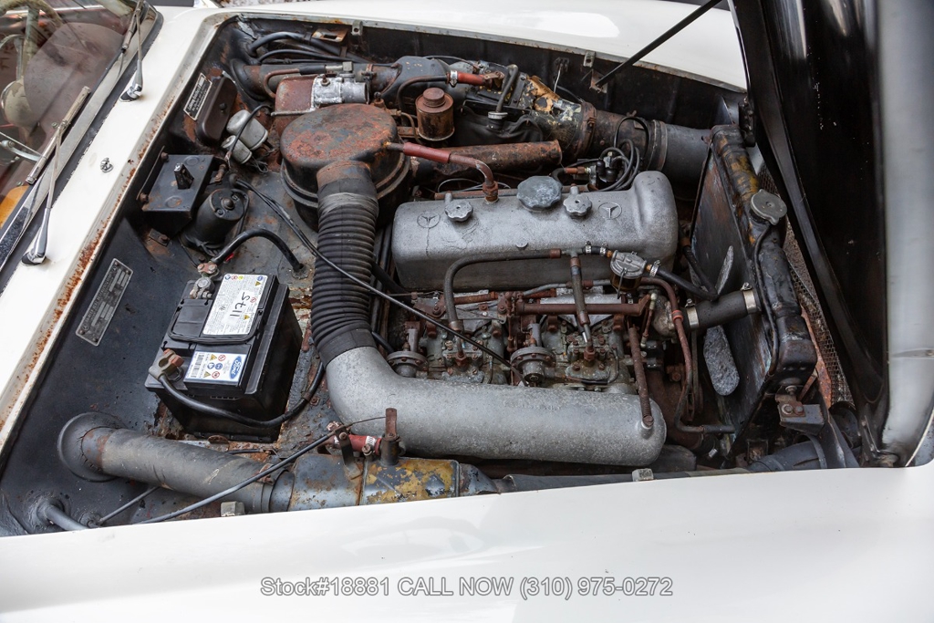 Equipped with a 4-speed manual transmission, inline-four engine, Solex dual carburetors, drum brakes all the way around, floor-mounted shifter, single exhaust outlet, white convertible soft-top, VDO instrumentation, chrome bumpers with overriders, Michelin white-line tires, 13-inch steel wheels, Mercedes-Benz branded hub caps, jack and a full-size spare tire fitted in the trunk. Featured amenities include bucket seating, ivory 2-spoke steering wheel, driver-side mirror, and a dash-mounted rearview mirror.