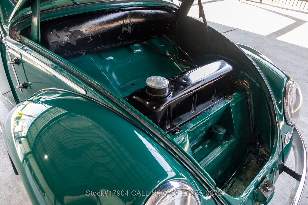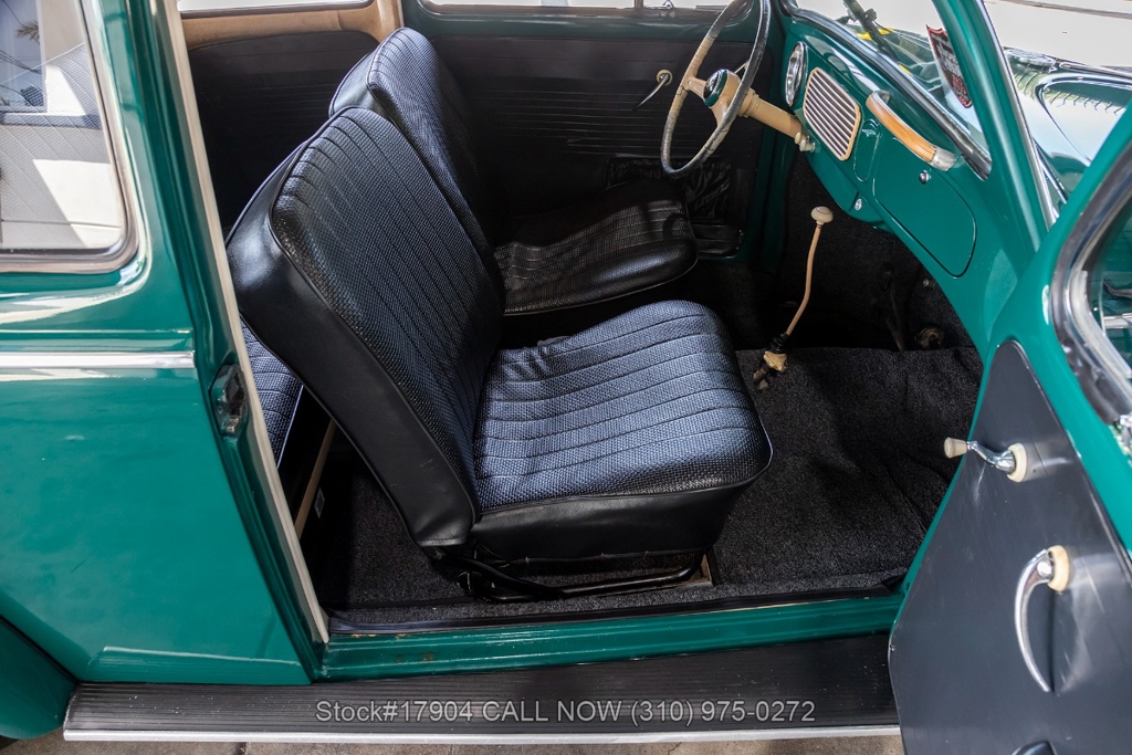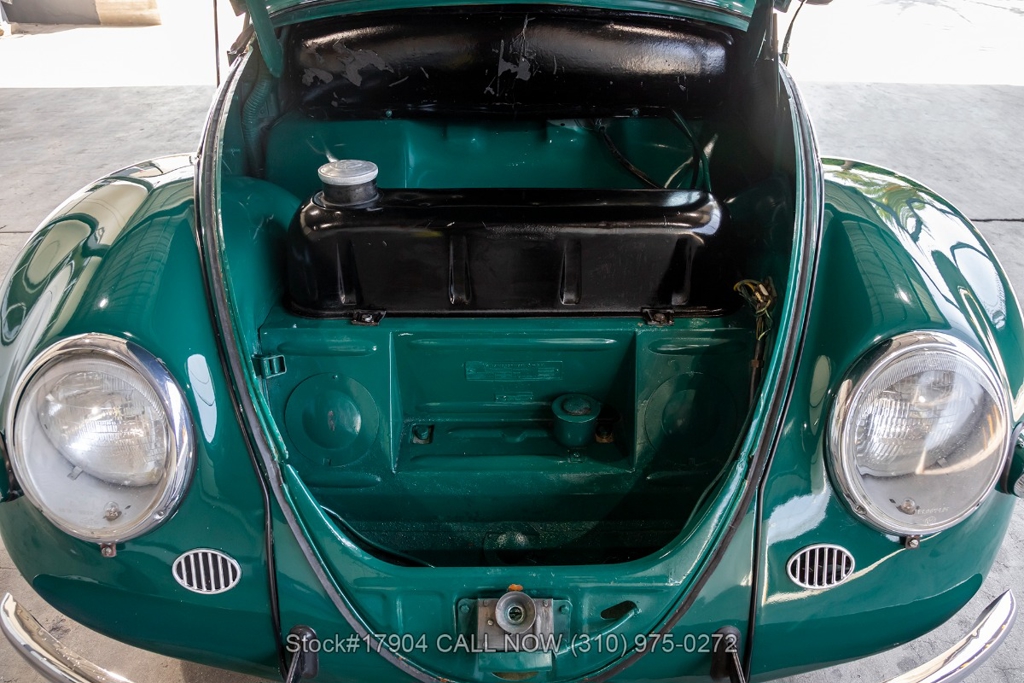 Equipped with a 4-speed manual transmission, flat-four engine, oval rear window, Solex carburetor, VDO instrumentation, single exhaust outlet, floor-mounted shifter, chrome trim/bumpers, chrome ring headlights, fender-mounted turn signals indicators, 15-inch steel wheels with Metric tires, Volkswagen branded hub caps, jack and a full-size spare tire fitted in the front trunk. The oval-window design adds a touch of nostalgia to this already iconic vehicle. Additional convenience features include forward-folding front seats, manual-crank windows, driver-side rearview mirror, vent windows, and a glove compartment.