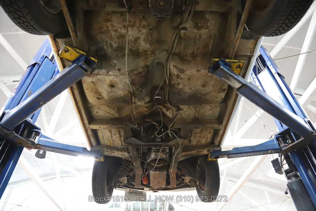 Equipped with a manual transmission, 1.3-liter inline-four engine, Solex single carburetor, four-wheel drum brakes, two-spoke steering wheel, convertible soft top frame, 15-inch steel wheels, Metric tires, and dual-side rearview mirrors.