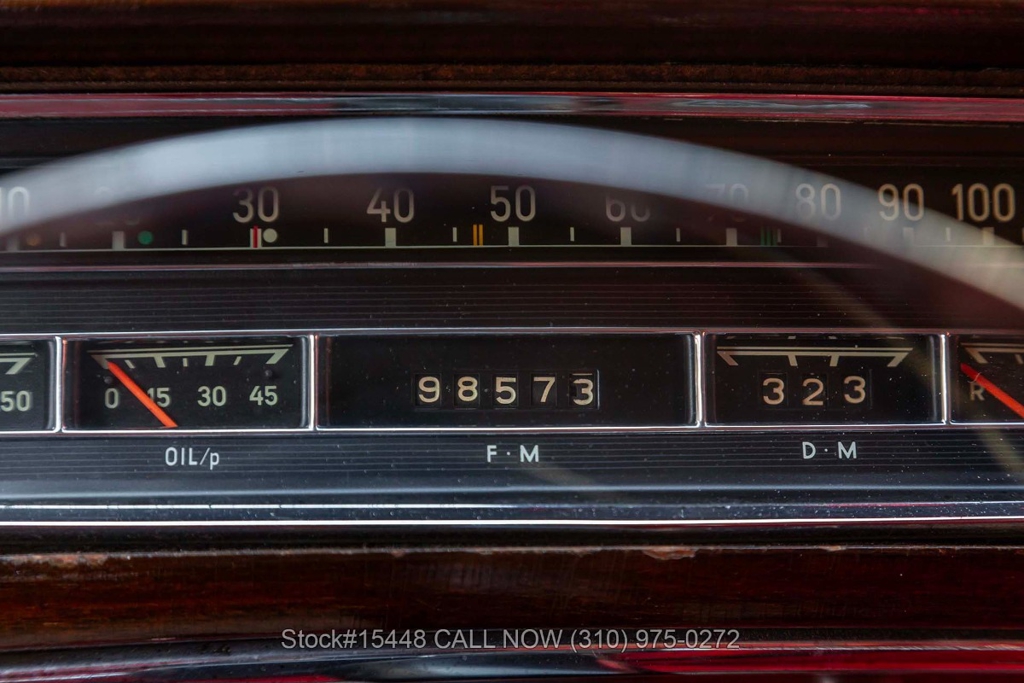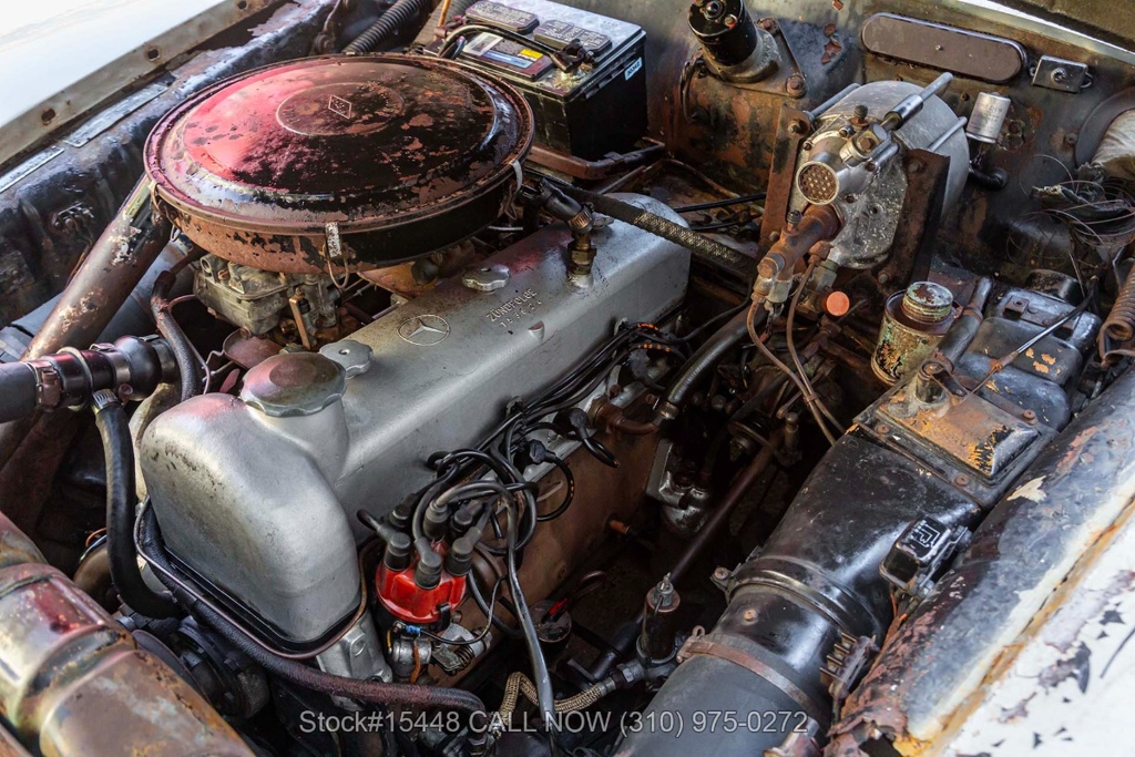 Equipped with a column shifted four-speed manual transmission, dual Solex carburetors, fog lights, two-spoke steering wheel, lockable glove compartment, chrome bumpers, Becker Europa radio, chrome grille, vent windows, solid wheels with Mercedes-Benz branded hub caps, VDO analog clock, jack, tool roll, and a spare wheel.