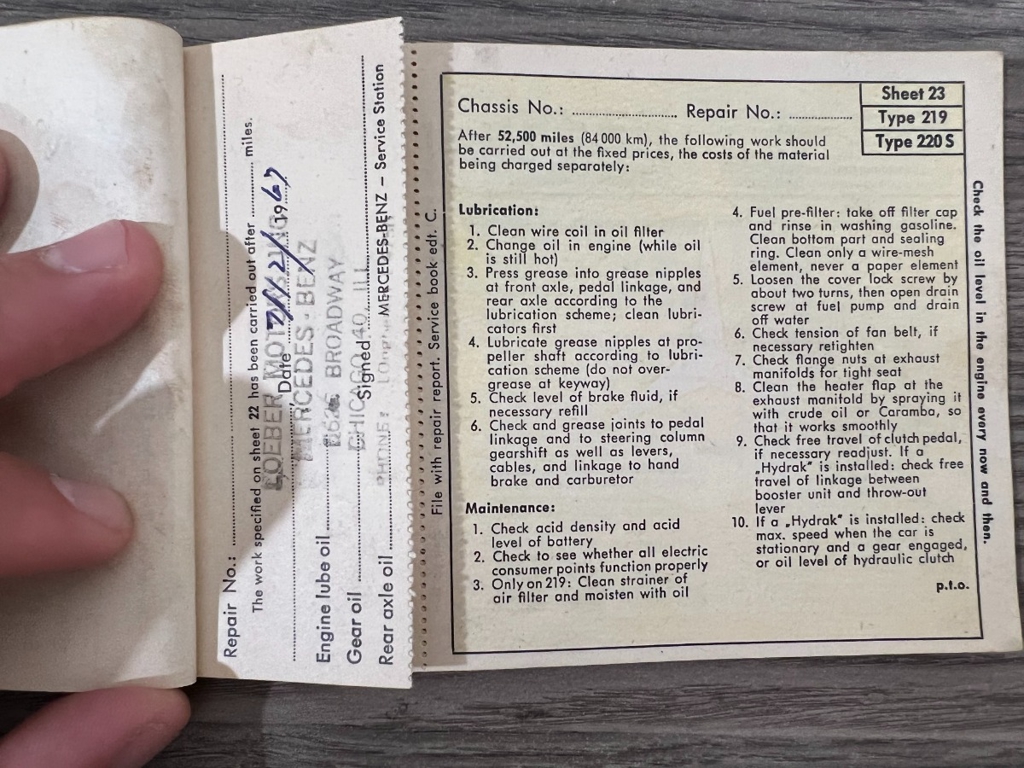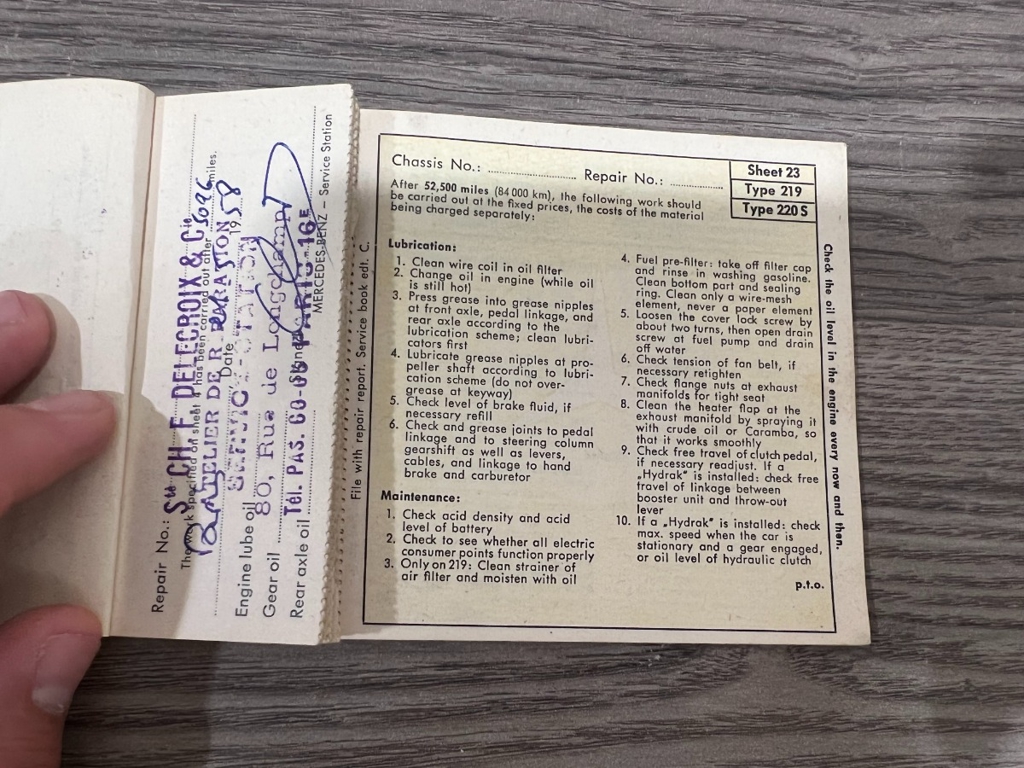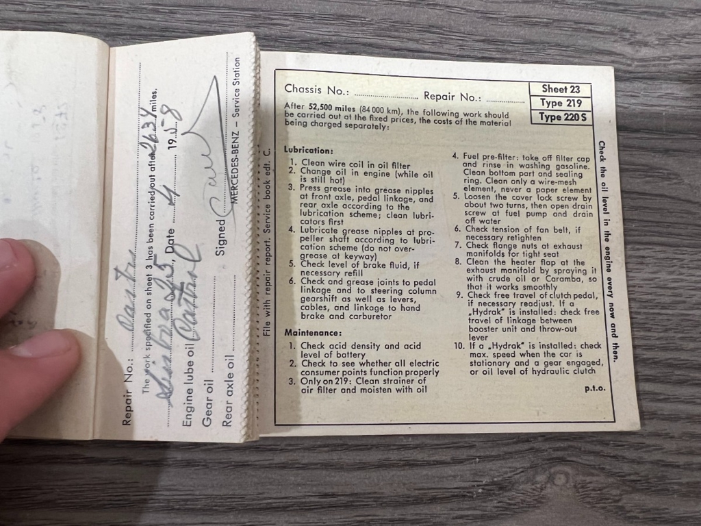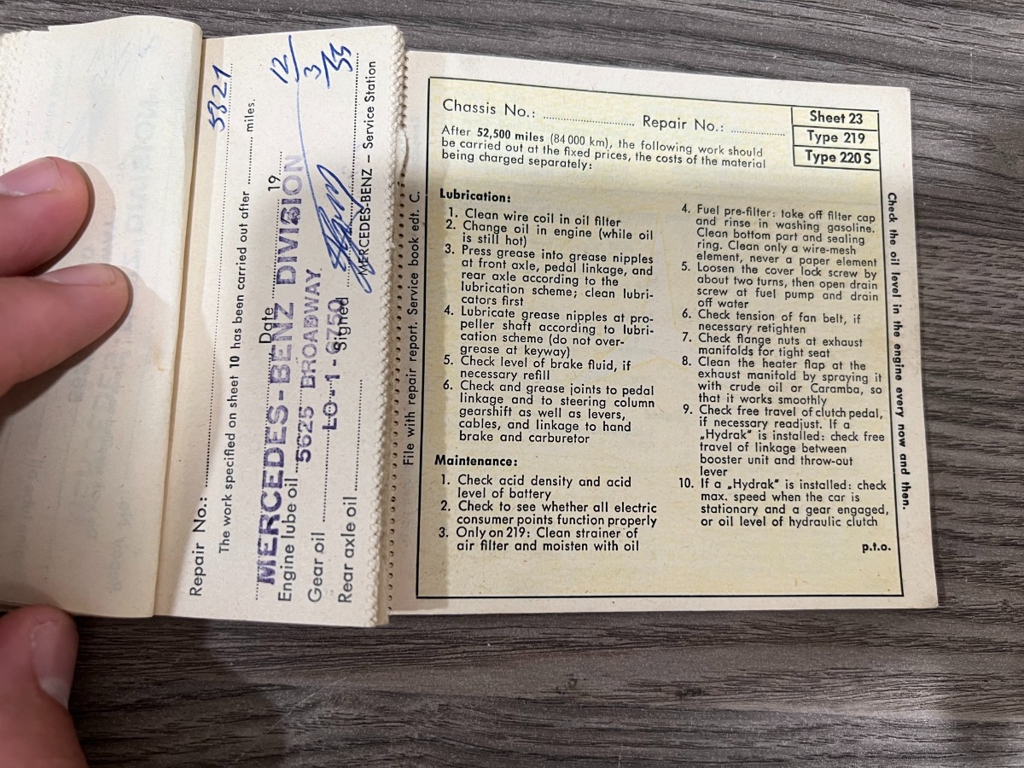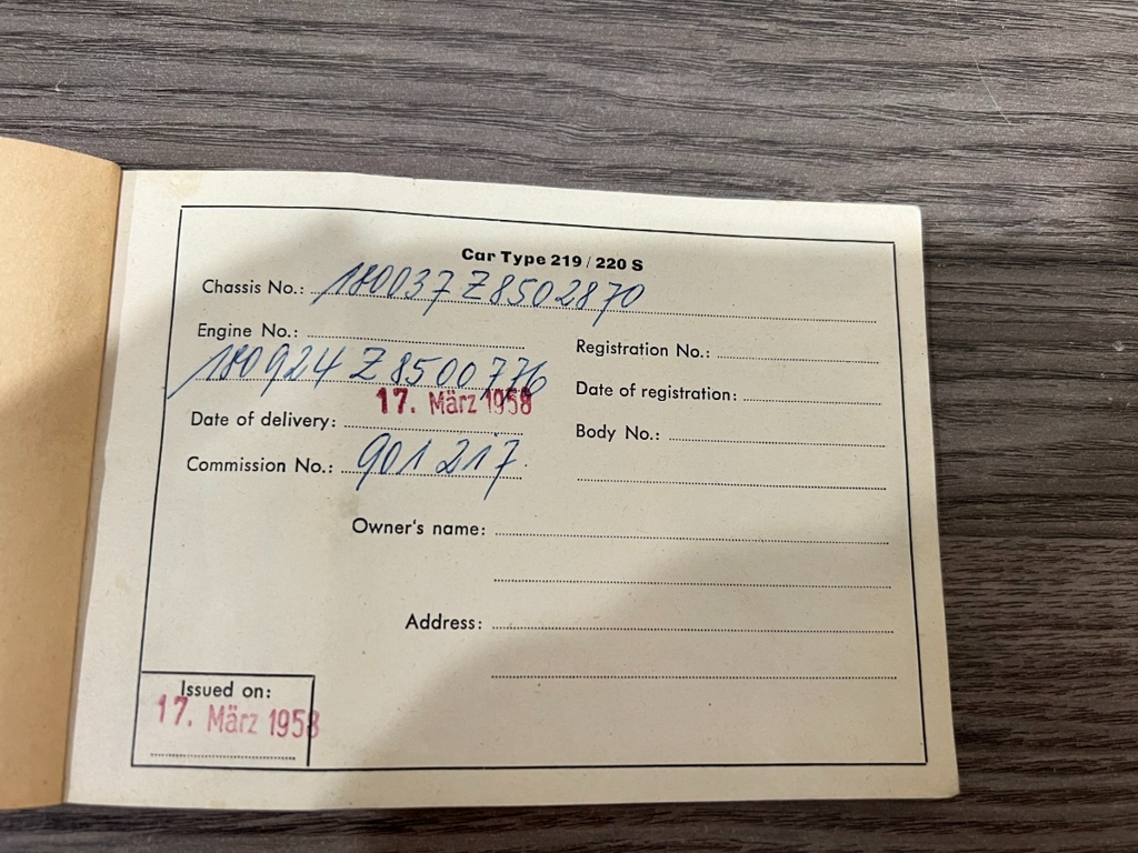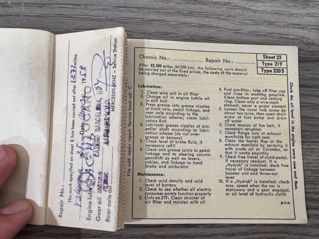 In addition to the equipment, this car also comes with the instruction manual booklet, service booklet with stamps and manufacturer's literature. A highly desirable 220S that has been sitting for many years like a time-capsule just waiting to be brought back to life. For $29,950