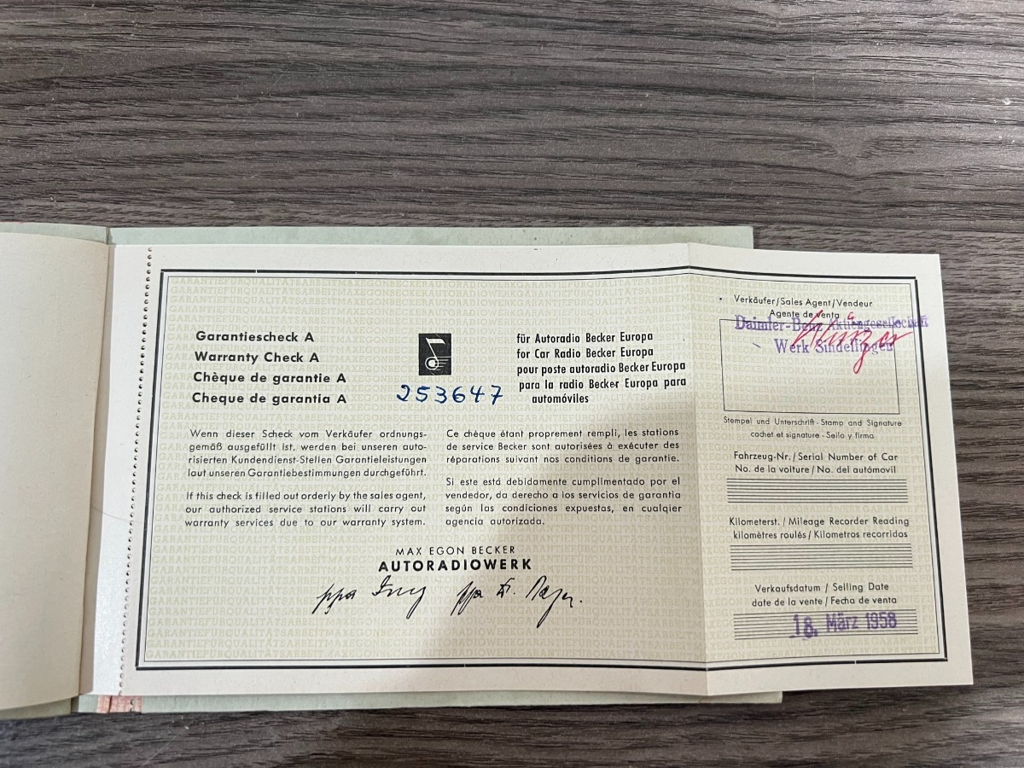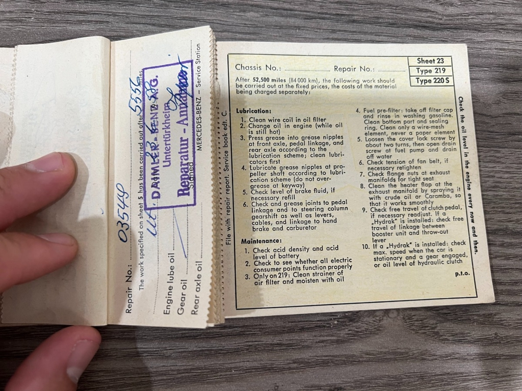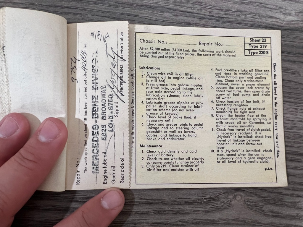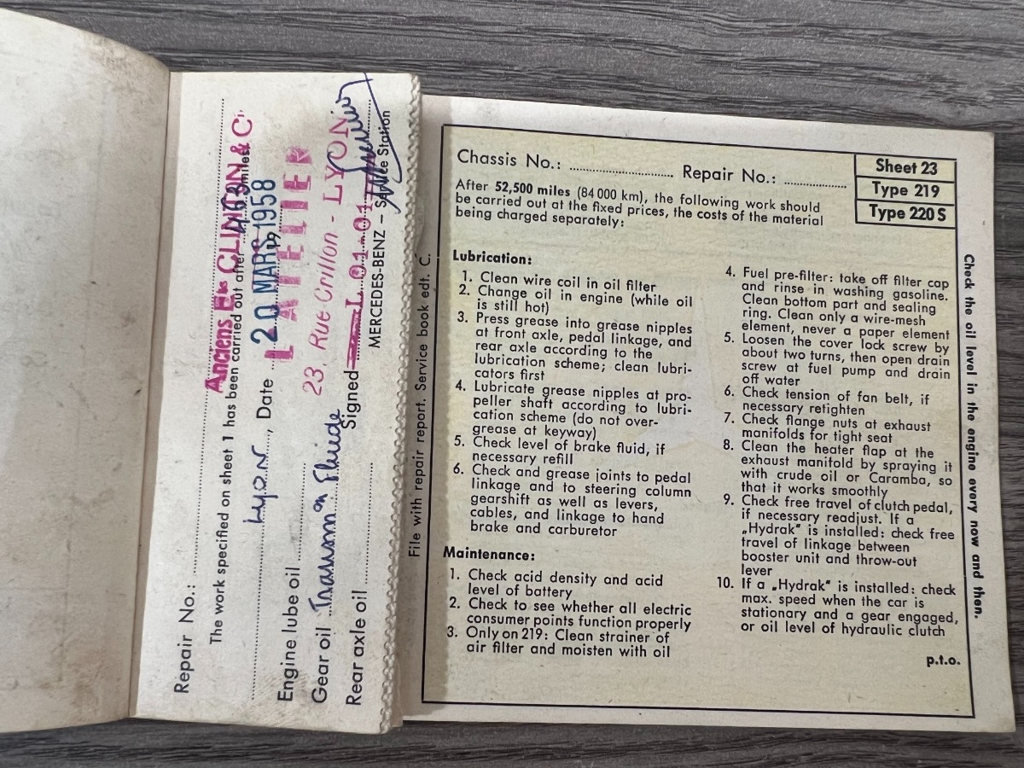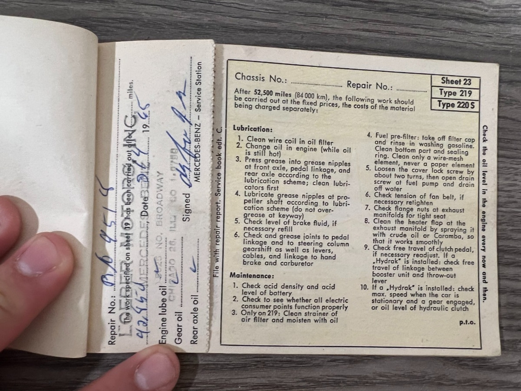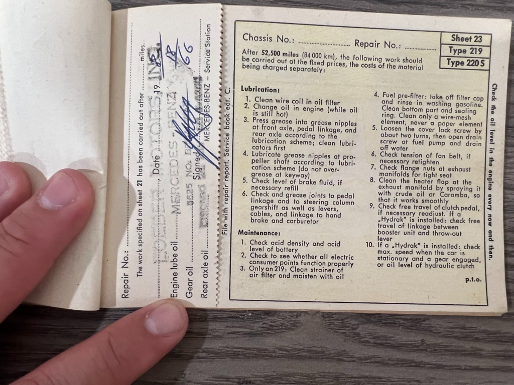 In addition to the equipment, this car also comes with the instruction manual booklet, service booklet with stamps and manufacturer's literature. A highly desirable 220S that has been sitting for many years like a time-capsule just waiting to be brought back to life. For $29,950