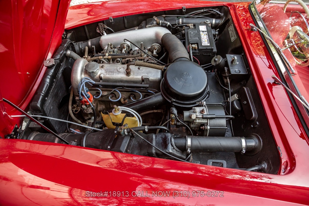 Under the hood, this 190SL is powered by a 1.9-liter M121 inline-four engine paired with a 4-speed manual transmission. Power is delivered through Solex dual carburetors, while drum brakes provide confident stopping power at all four corners.