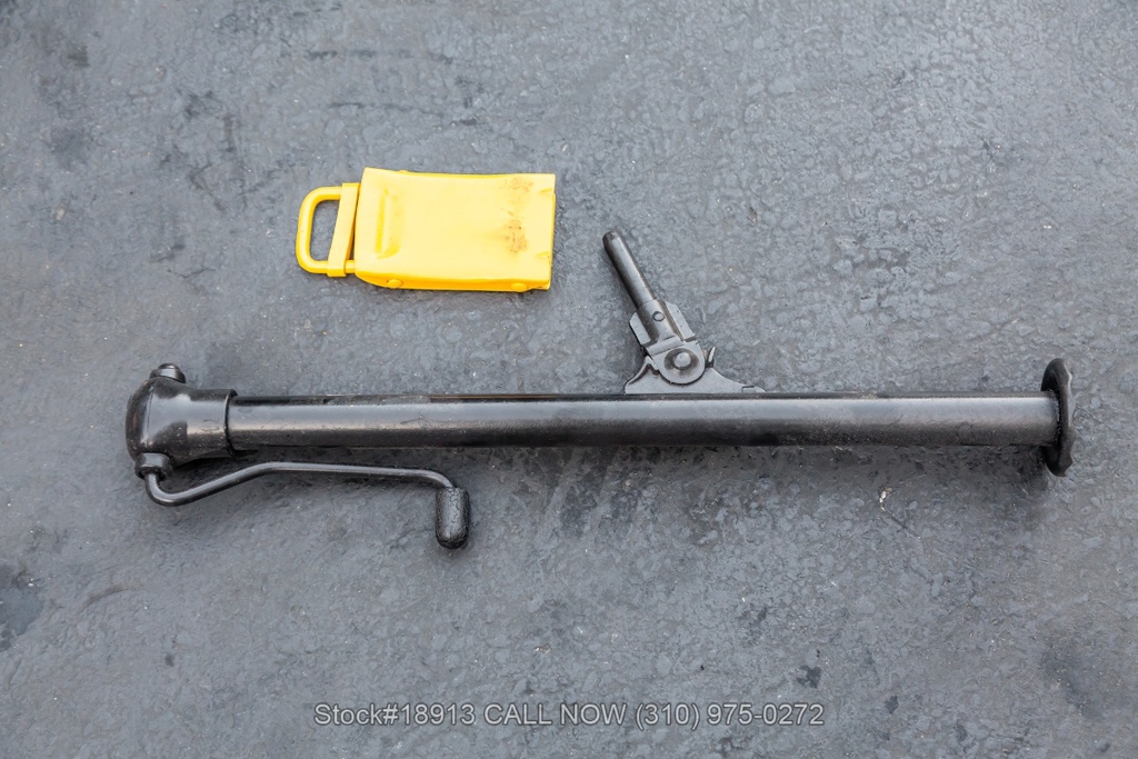 Additional equipment includes VDO instrumentation, a floor-mounted shifter, single exhaust outlet, chrome bumpers with overriders, 13-inch steel wheels with Mercedes-Benz hubcaps, jack, and a full-size spare tire.