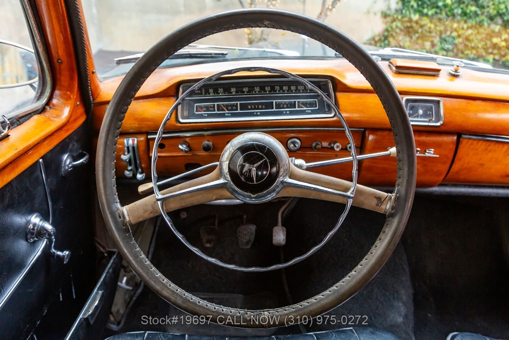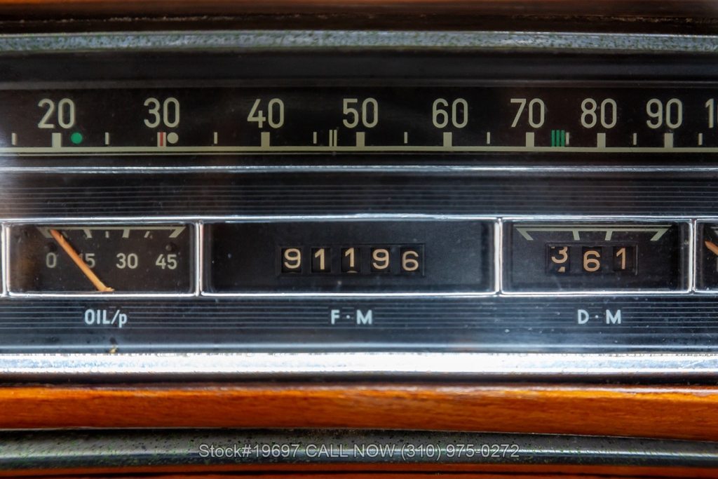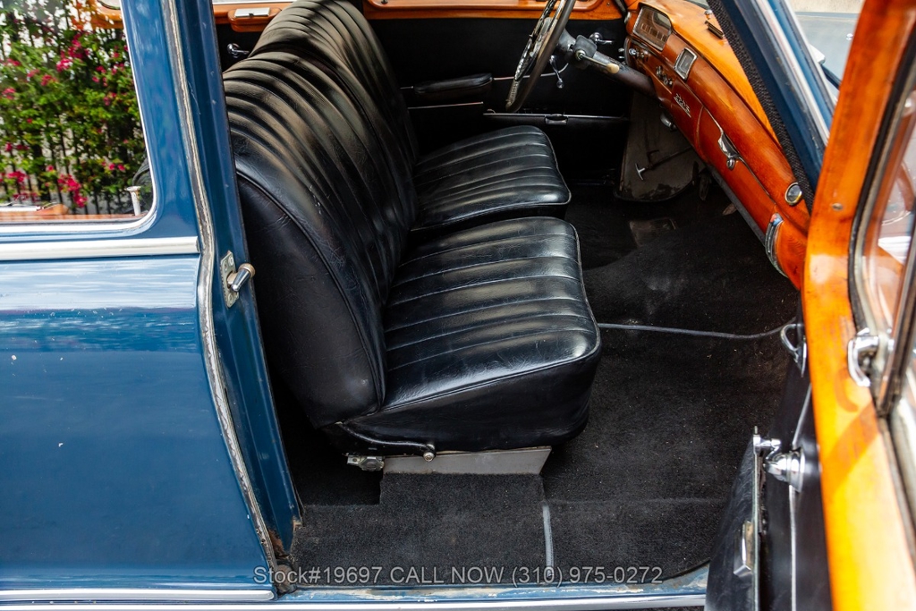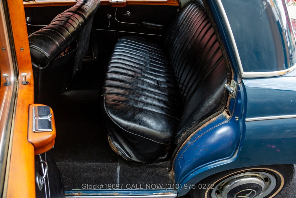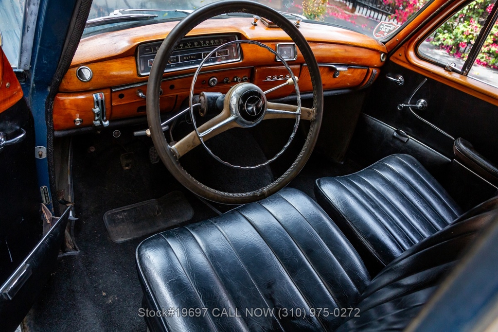 Inside, the cabin reflects Mercedes-Benz's craftsmanship of the era, with low-back front bucket seats, a rear bench, manual crank windows, door storage pockets, a glove compartment, analog clock, and wood interior trim accents that add warmth to the otherwise simple, functional layout.