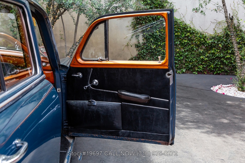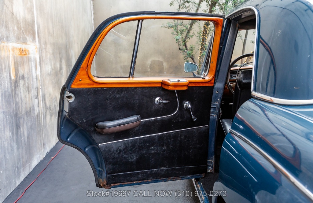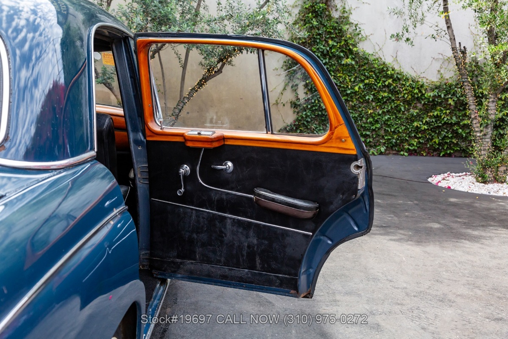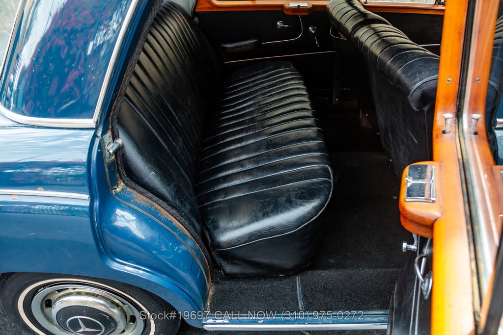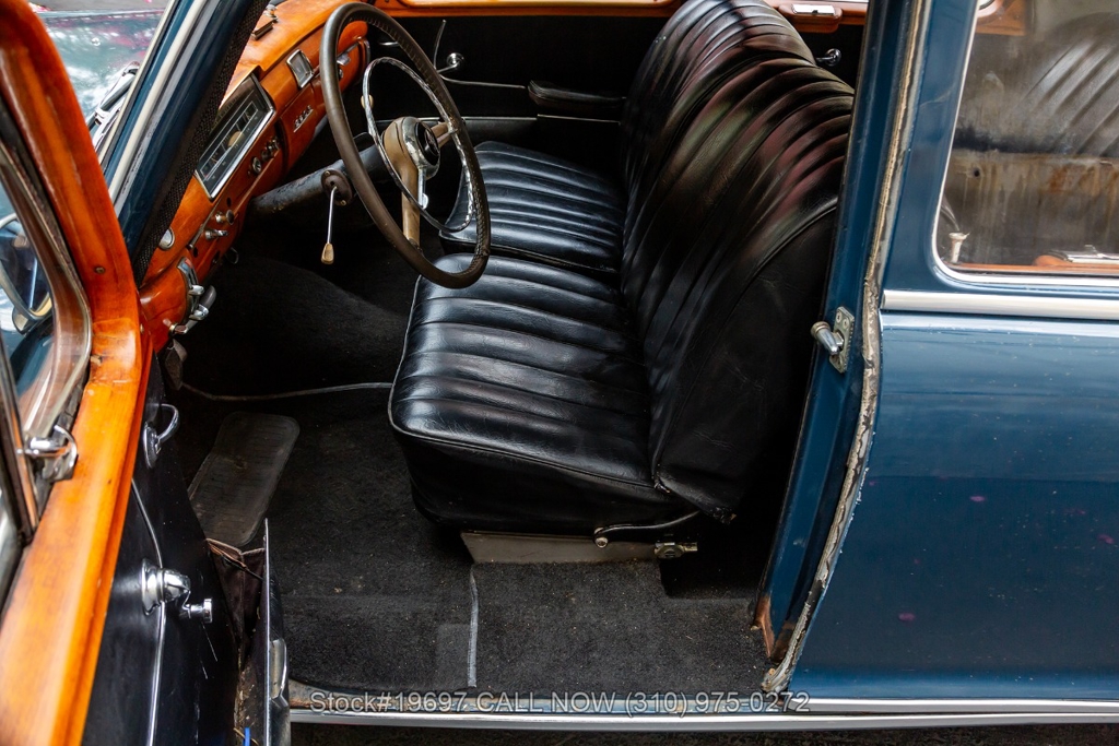 Inside, the cabin reflects Mercedes-Benz's craftsmanship of the era, with low-back front bucket seats, a rear bench, manual crank windows, door storage pockets, a glove compartment, analog clock, and wood interior trim accents that add warmth to the otherwise simple, functional layout.