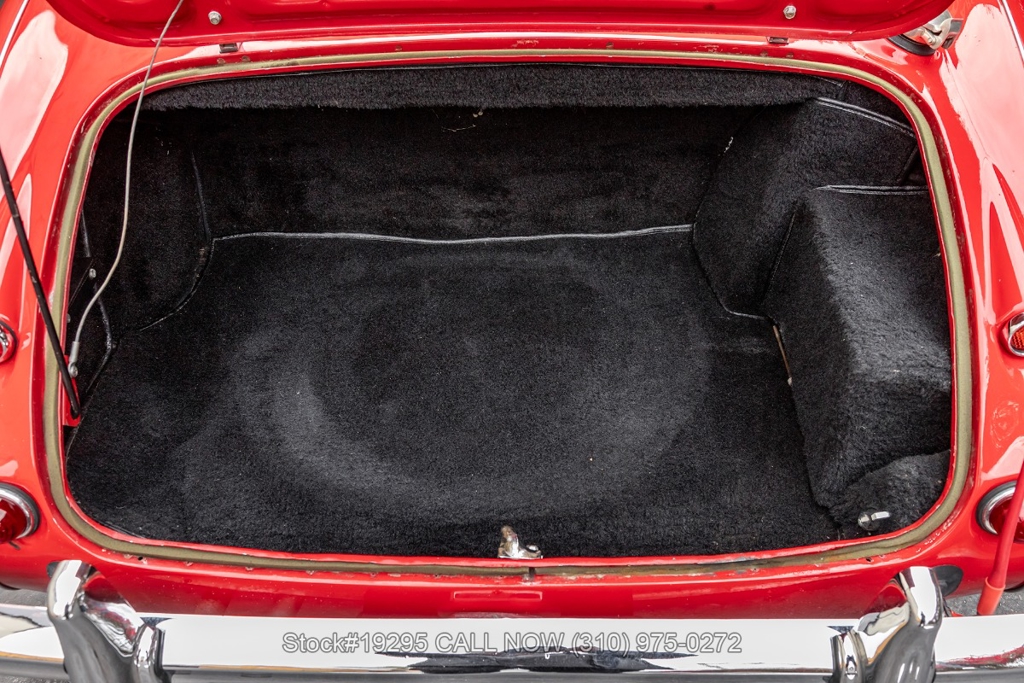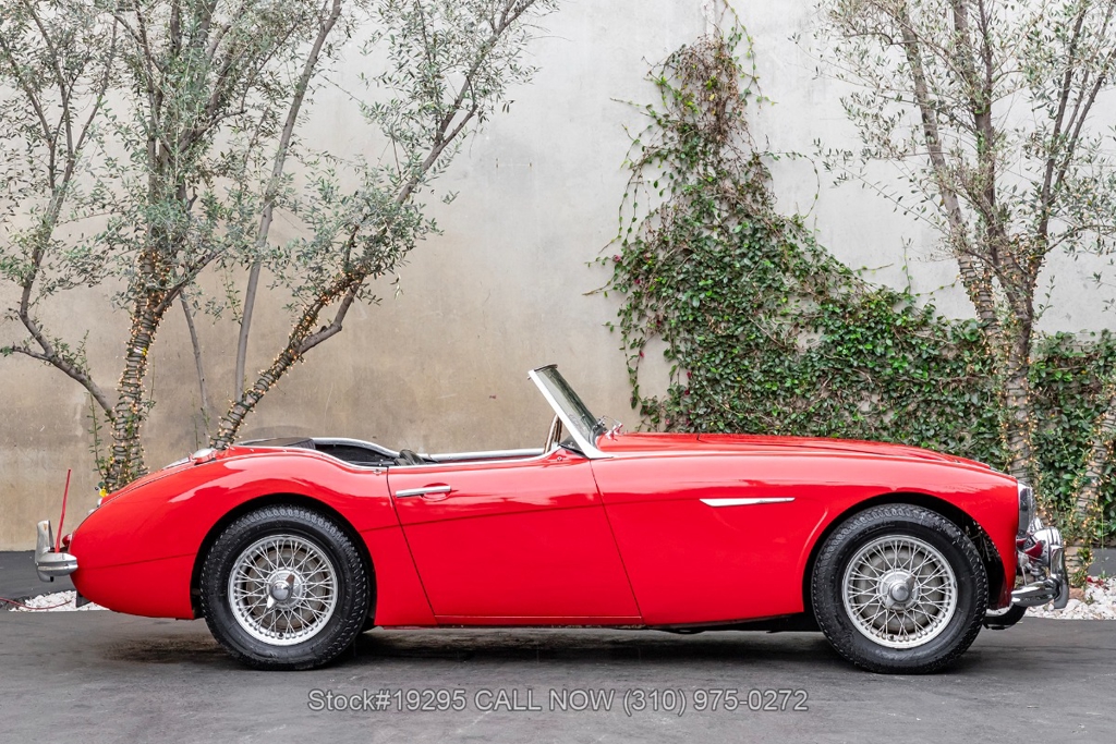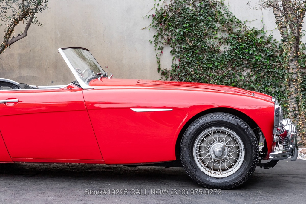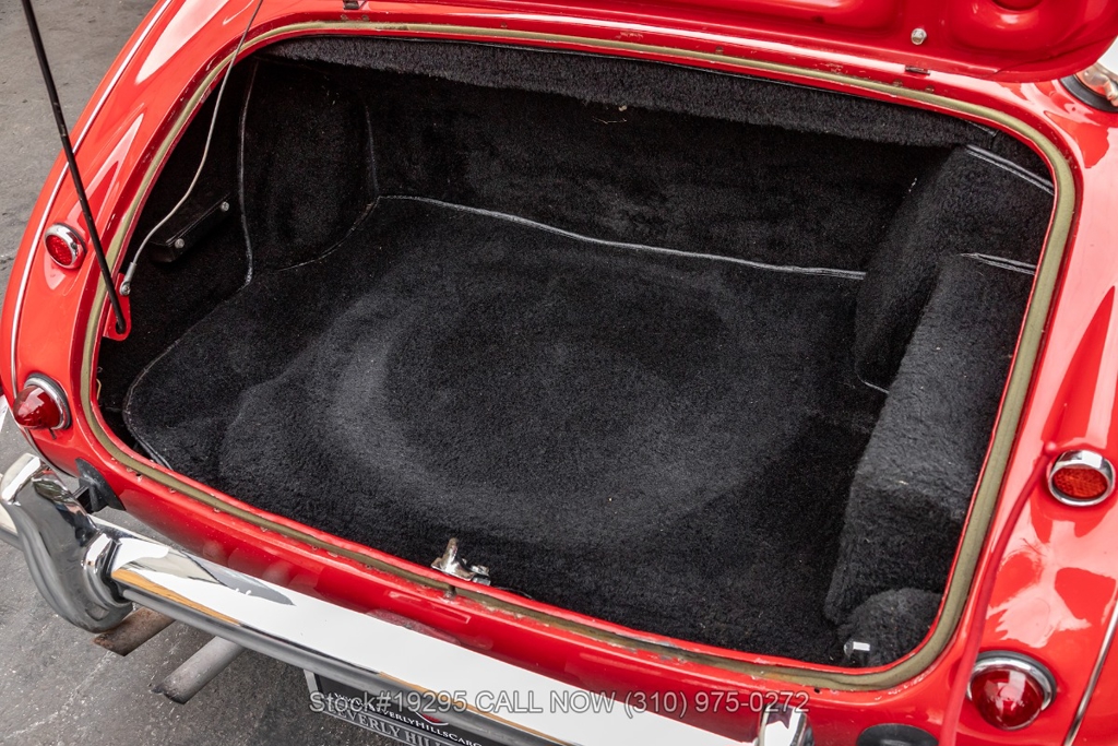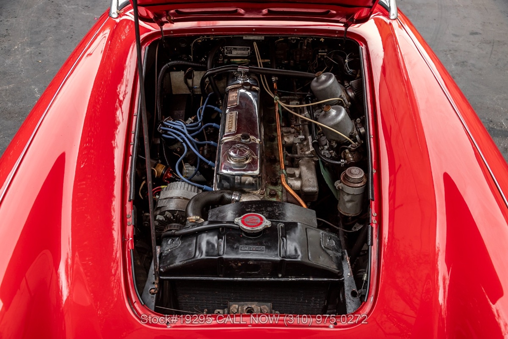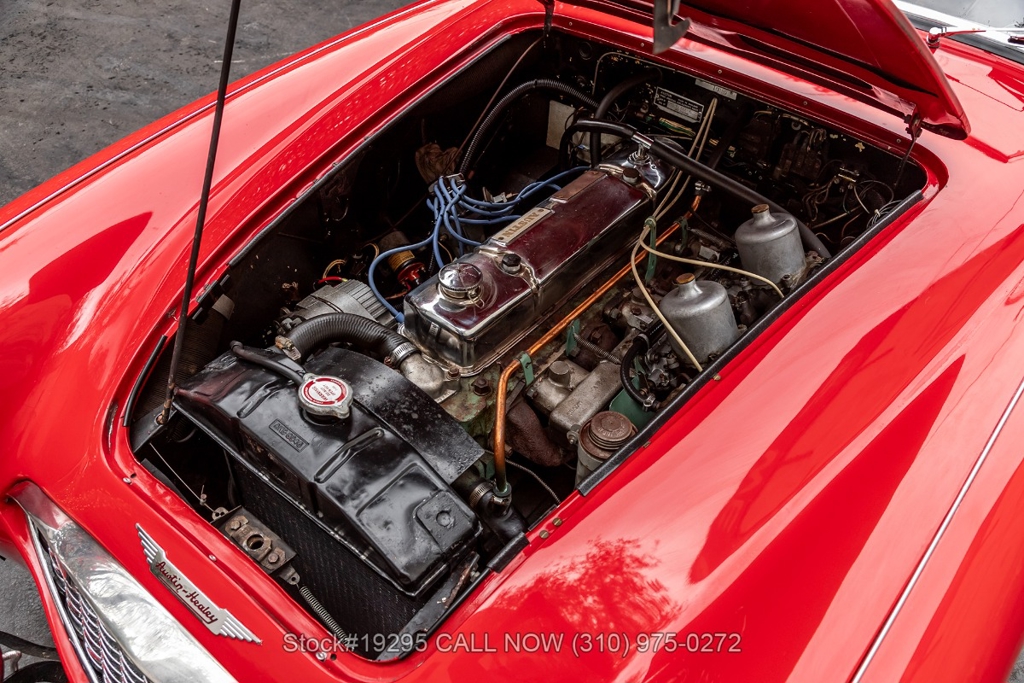 Under the bonnet, this Austin-Healey is powered by a 2,912cc inline 6-cylinder engine, SU dual carburetors, and a 4-speed manual transmission. Additional equipment includes drum brakes all the way around, floor-mounted shifter, dual exhaust outlets, Smiths instrumentation, chrome trim/bumpers, 15-inch wire wheels with knock-off spinners, and a full-size spare tire fitted in the trunk. Convenience features include a pair of bucket seats, a dash-mounted rearview mirror, 3-spoke steering wheel, and a passenger dash grab handle.