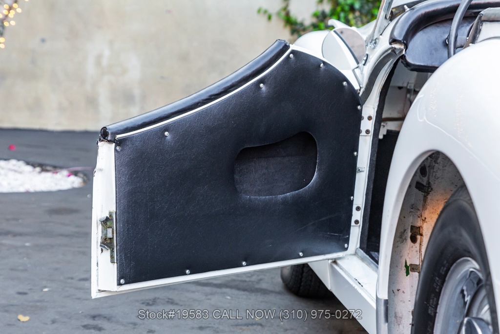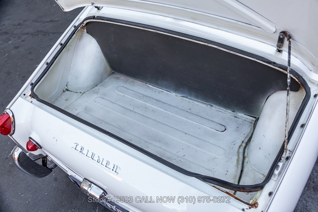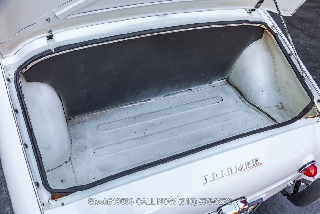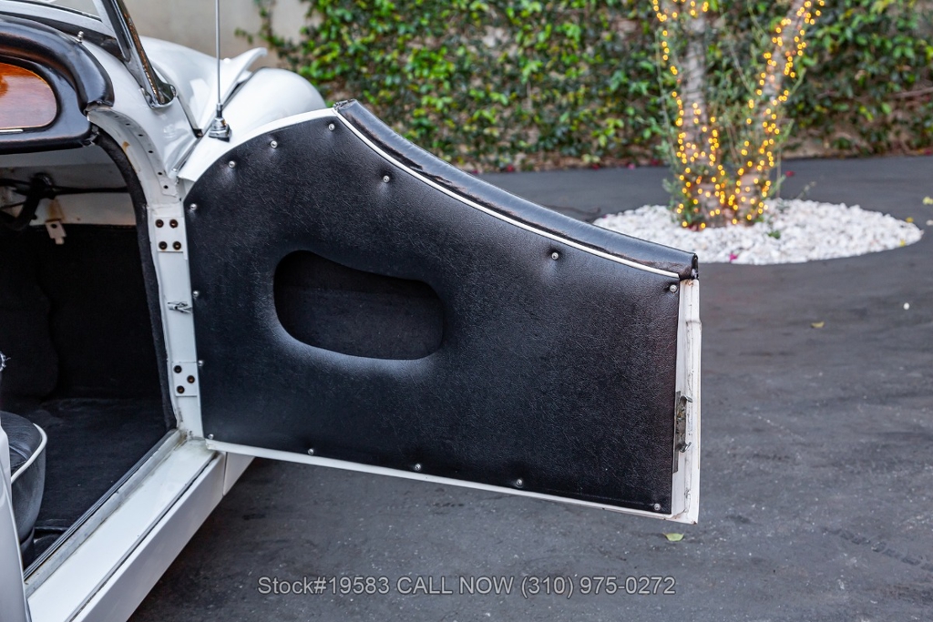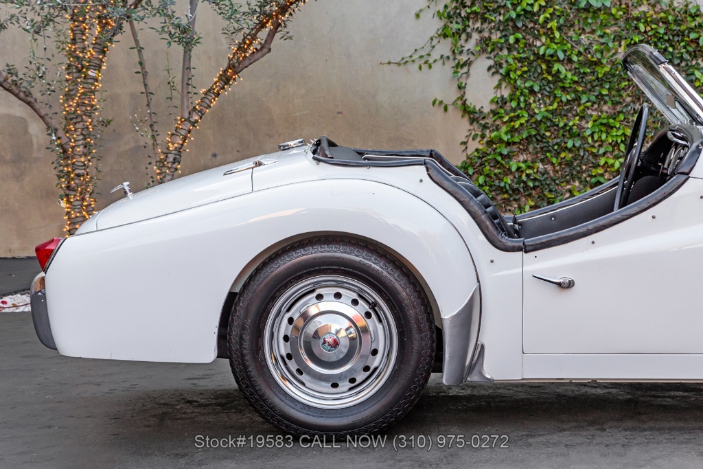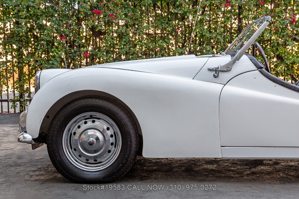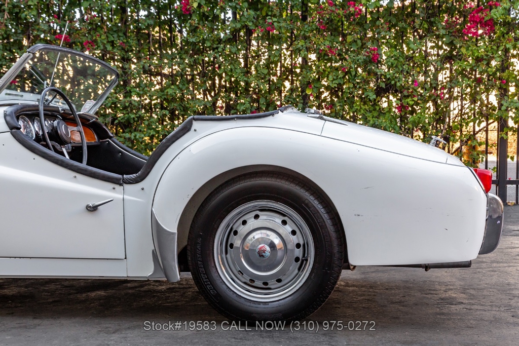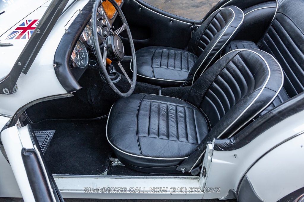 Power comes from a 1,991cc inline-four engine paired with a 4-speed manual transmission and fed by dual SU carburetors. This classic car is also equipped with front-wheel disc brakes, an impressive feature for its time, as the TR3 was one of the first production cars to offer front disc brakes, helping set a new standard for sports car braking performance in the late 1950s. Additional equipment includes a single exhaust outlet, Jaeger/Lucas instrumentation, a banjo-style steering wheel, floor-mounted shifter, chrome trim, front chrome bumper with overriders, 15-inch steel wheels wrapped in Centennial tires, and a full-size spare tire stored in the rear compartment.