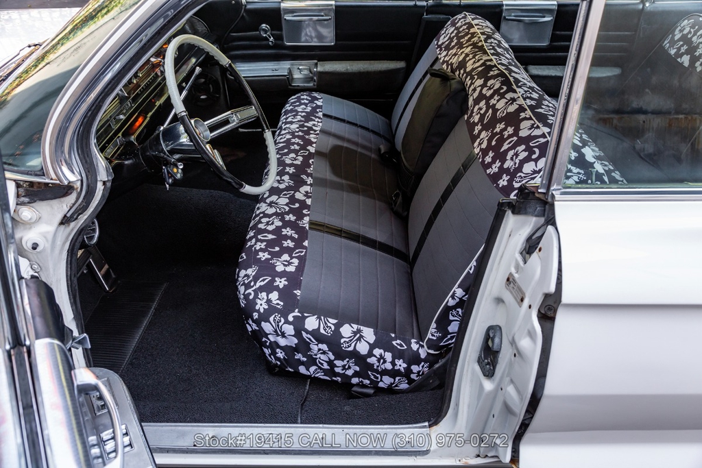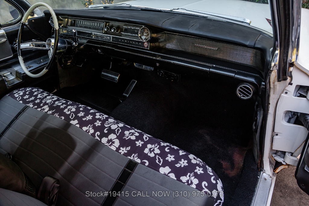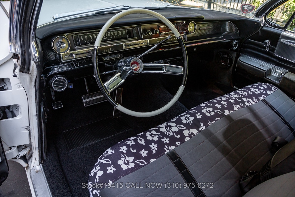 Offered here is a 1961 Cadillac DeVille Sedan, finished in its factory color Olympic White exterior and paired with a custom Black and White hibiscus/floral print fabric interior with gray vinyl inserts. The look is unmistakably early-'60s Cadillac, long, low, and elegant, while still feeling approachable and usable.