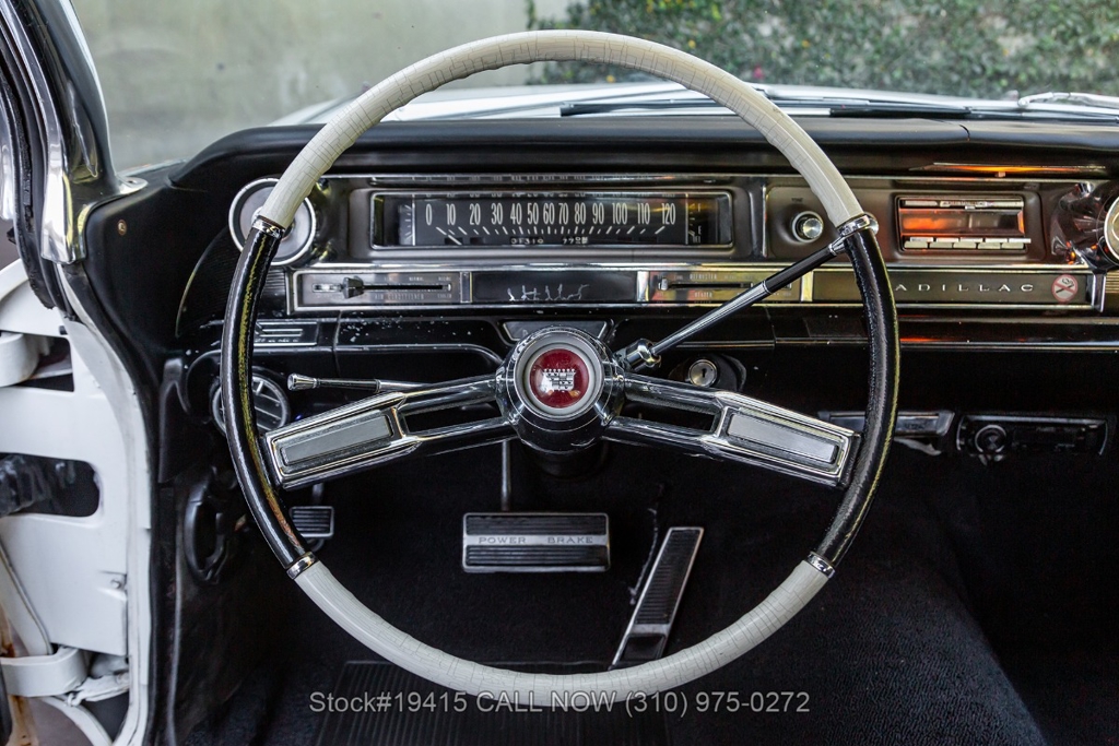 Inside, the cabin presents well with its custom upholstery, bench seating front and rear, and a traditional Cadillac dashboard layout. Equipment includes power windows, a push-button radio, driver-side mirror, quarter windows, and ample interior space that made these cars famous for comfort on long drives.