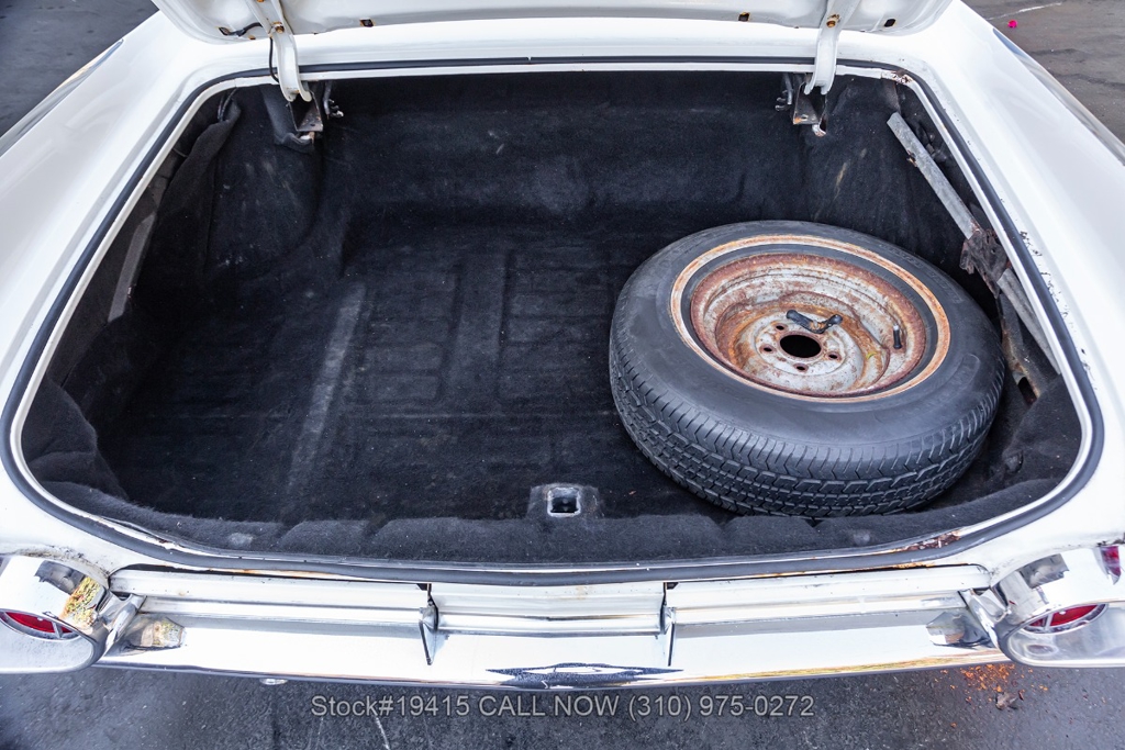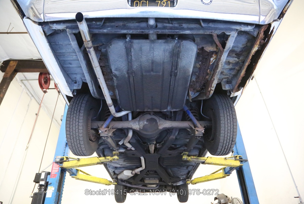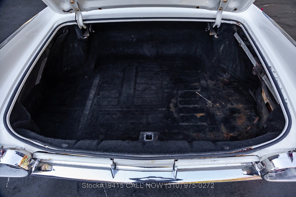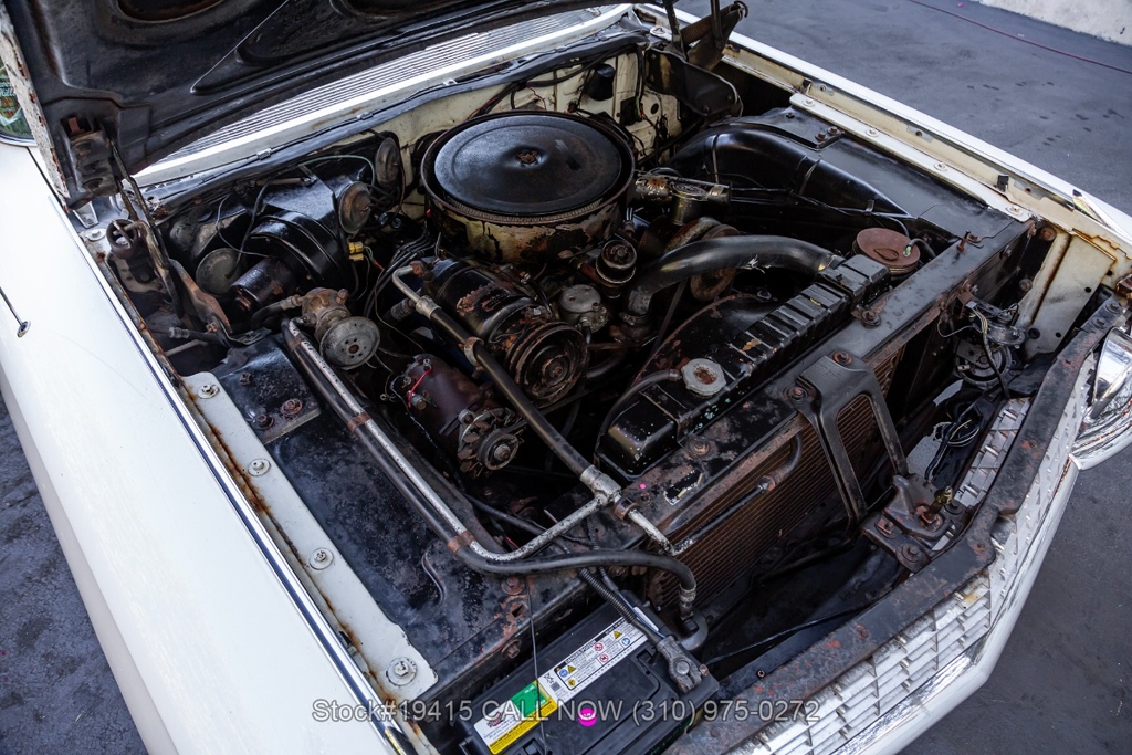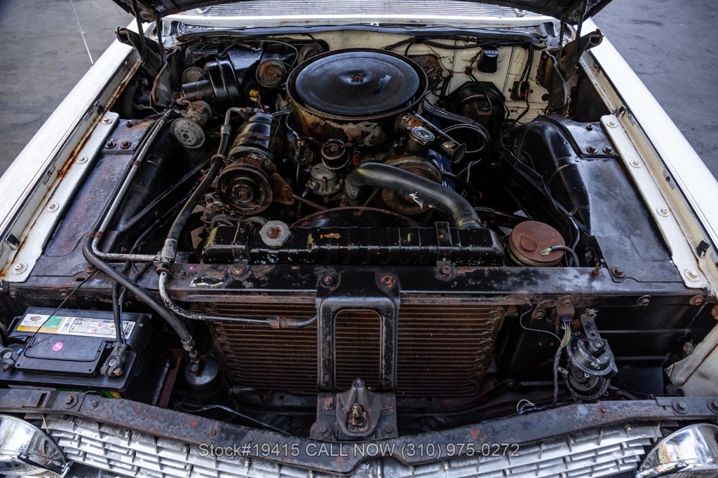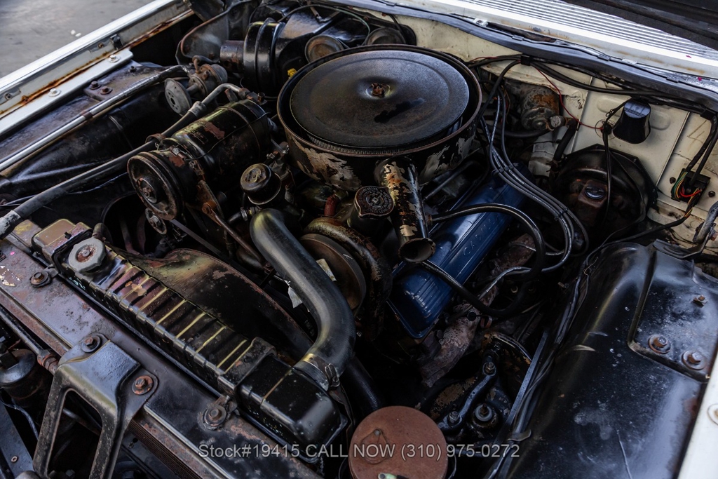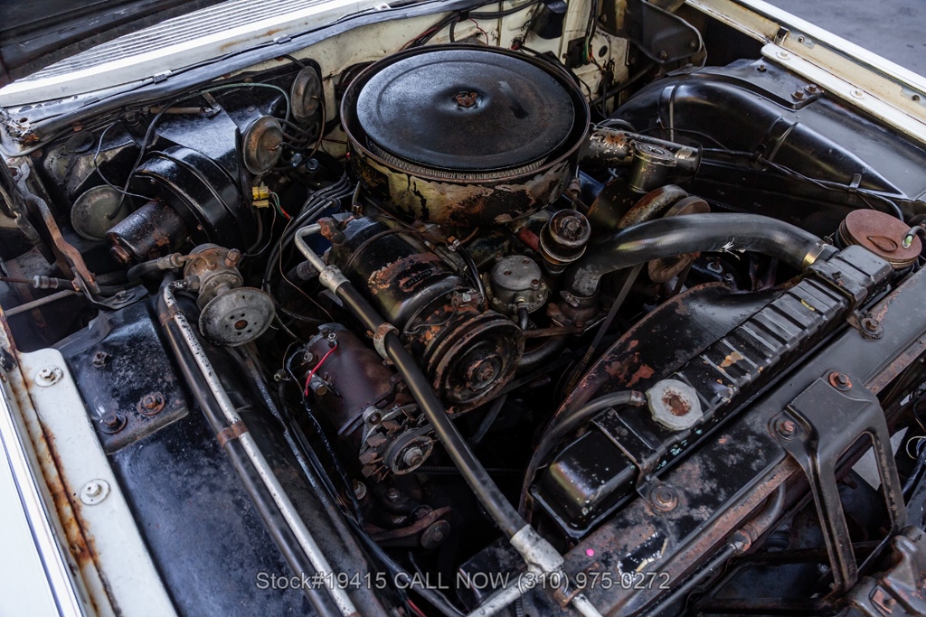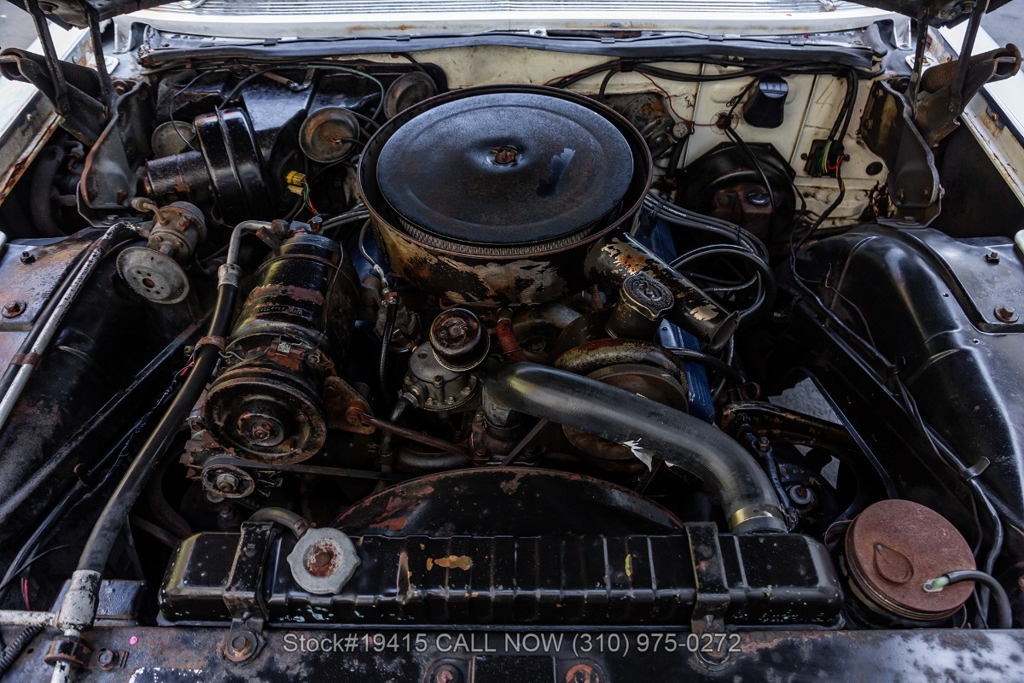 Power comes from a V8 equipped with a 2-barrel carburetor, mated to an automatic transmission that delivers smooth, relaxed cruising. Features include power steering, steel wheels with Cadillac stainless wheel covers, thin whitewall tires, chrome accents, and a clean, straightforward single exhaust setup.