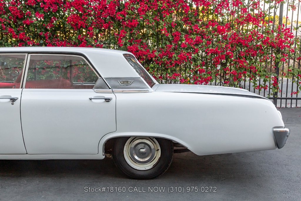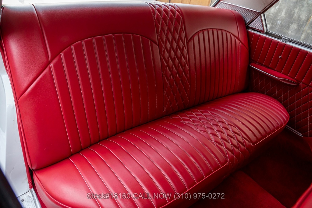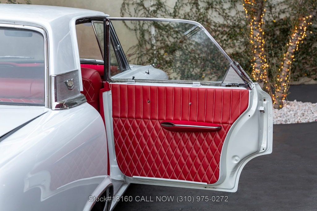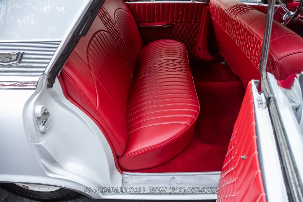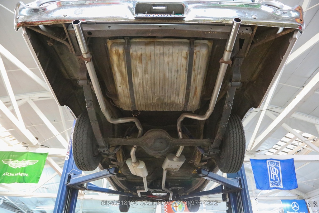 Equipped with a Cruise-O-Matic transmission, V8 engine, Holley 4-barrel carburetor, chrome trim/bumpers, quadruple headlights, 3-spoke steering wheel with a horn, and 14-inch steel wheels with Ford hub caps. Featured amenities include comfortable bench seating, driver-side rearview mirror, vent windows, quarter windows, retro radio, glove compartment, and stylish trunk storage.