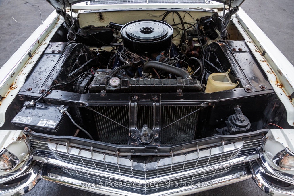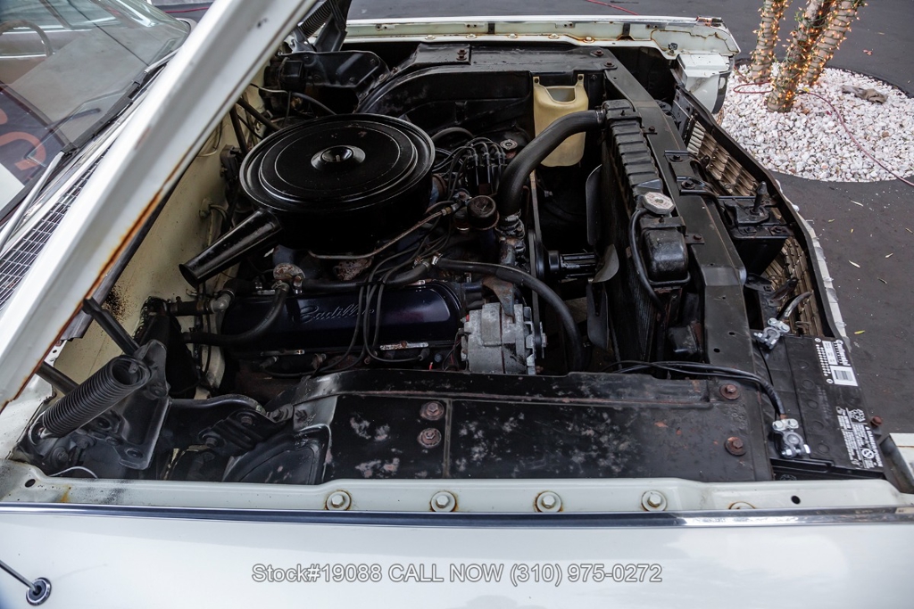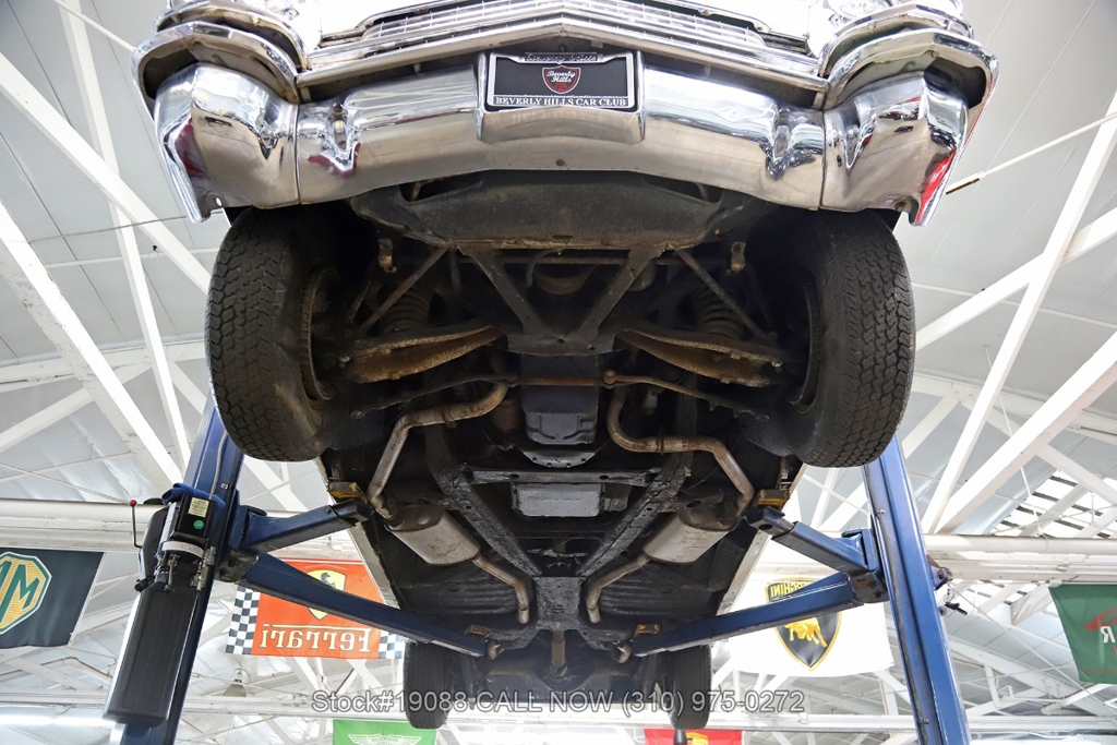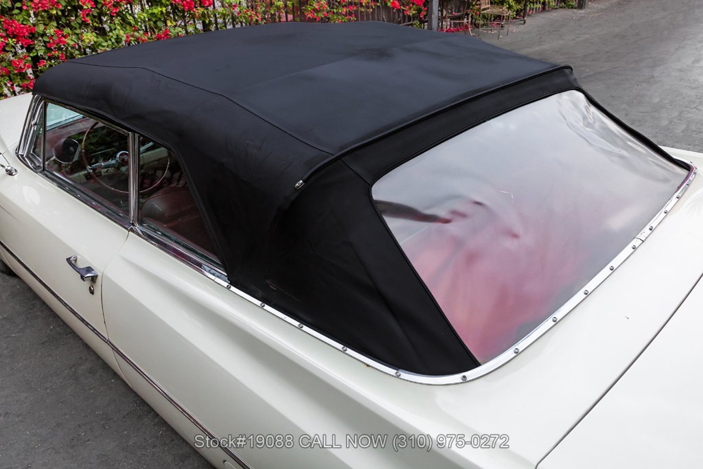 Powered by a V8 engine equipped with a 4-barrel carburetor and paired with an automatic transmission, this Series 62 offers optimal performance. Additional features include power steering, dual exhaust outlets, a two-spoke steering wheel, wide chrome front grille, chrome bumpers and accents, rear wheel skirts, whitewall tires, and 15-inch steel wheels fitted with Cadillac stainless steel wheel covers. The black power-operated soft top completes the classic convertible profile.