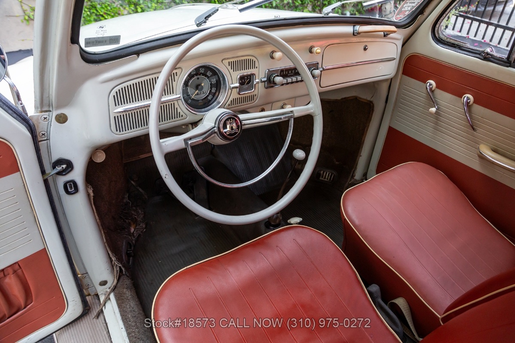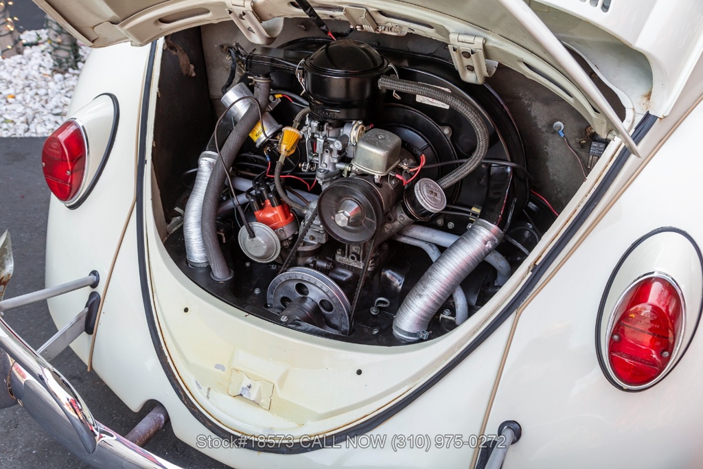 Introducing this extremely original 1963 Volkswagen Beetle that is finished in a cream exterior color complemented by its brown interior. The sleek and unmistakable design of the Beetle has made it a cultural icon, earning its place as one of the most produced cars in the world. Its compact size, rounded curves, making it a standout on the road. To further add to this Beetles desirability, equipped is California black-license plate that showcases its West Coast roots.
