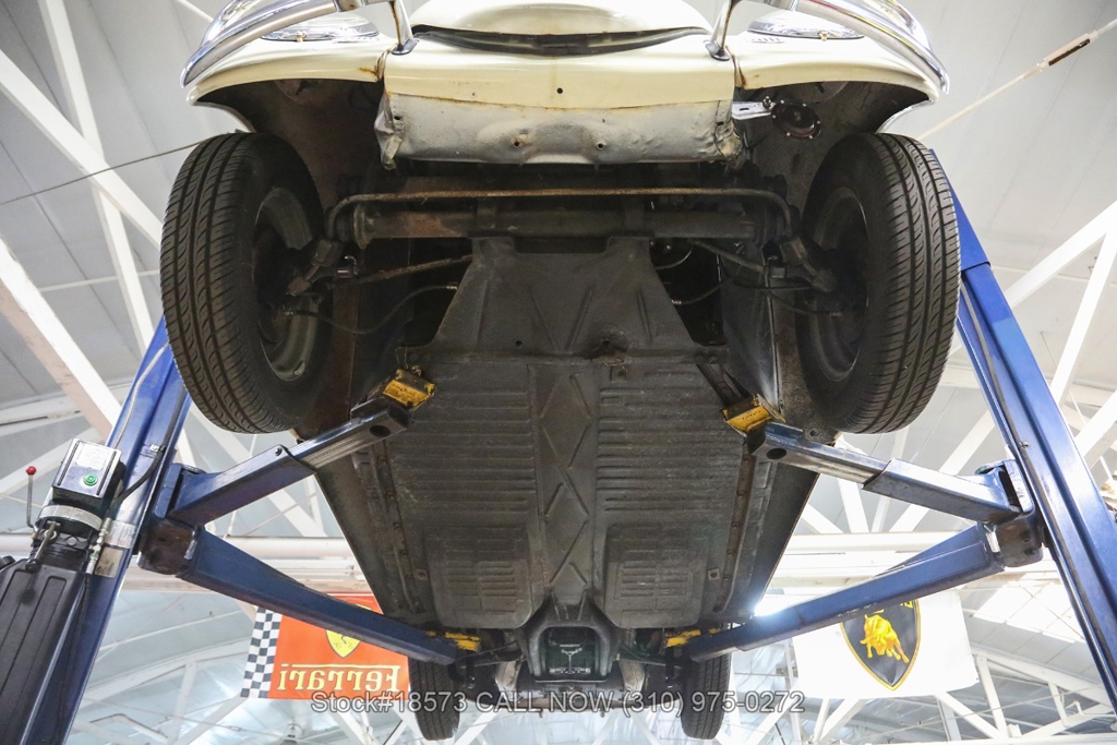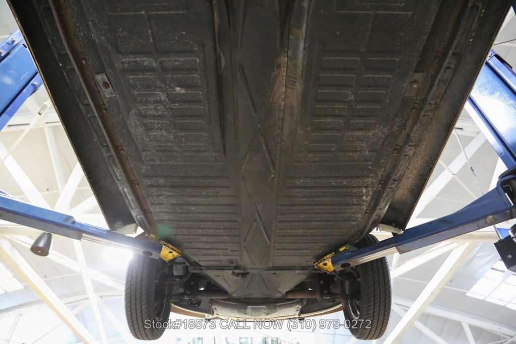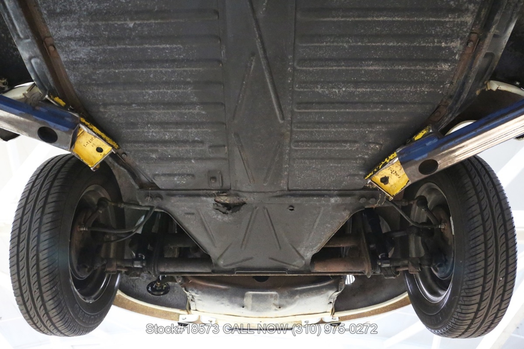 Equipped with a 4-speed manual transmission, flat-four engine, Solex single-barrel carburetor, VDO instrumentation, dual exhaust outlets, floor-mounted shifter, chrome trim/bumpers, chrome ring headlights, fender-mounted turn signals indicators, 15-inch steel wheels with VW hubcaps, tool roll, and a full-size spare tire fitted in the front trunk. Additional convenience features include low-rise front seats, driver-side rearview mirror, vent windows, and a Sapphire I stereo.