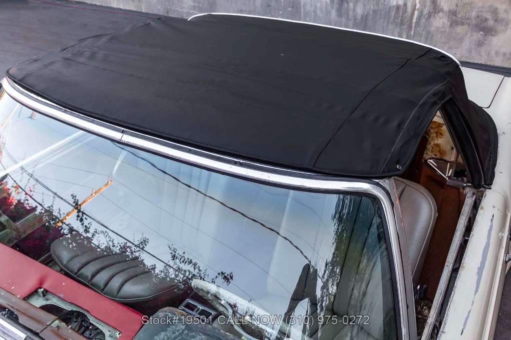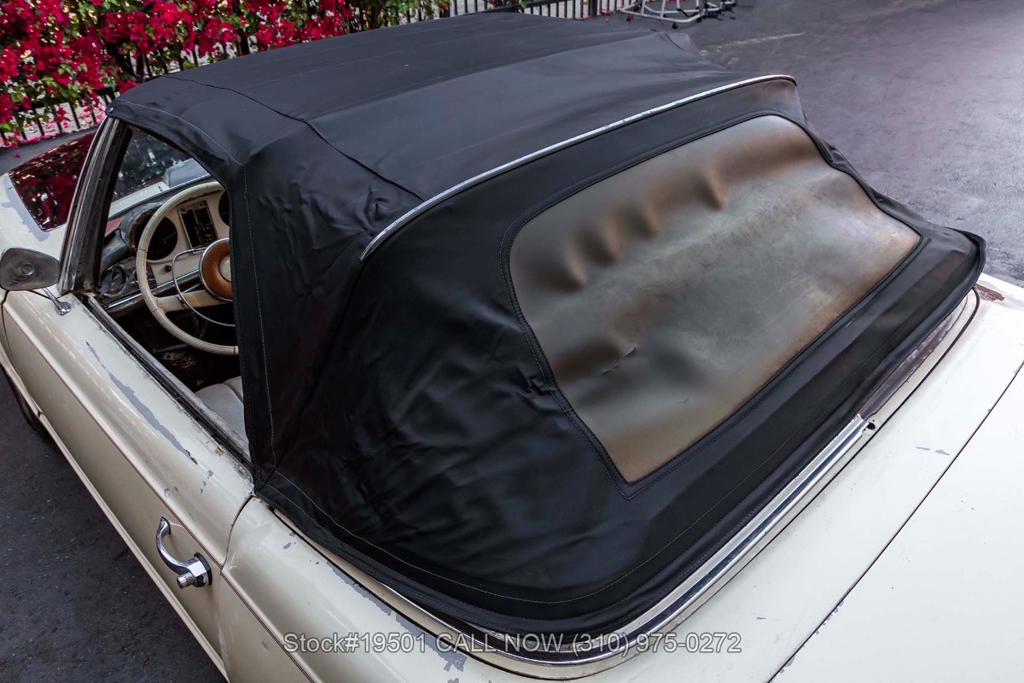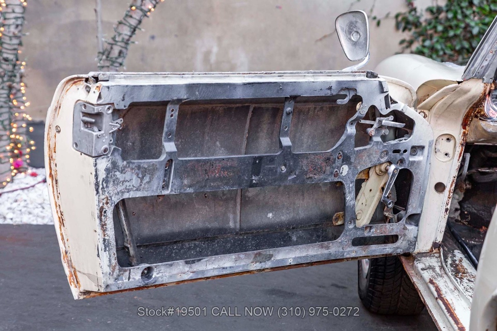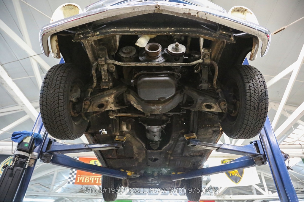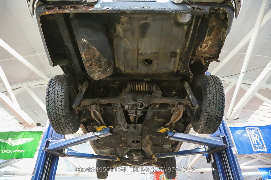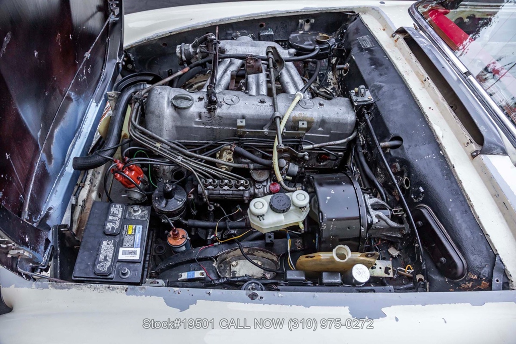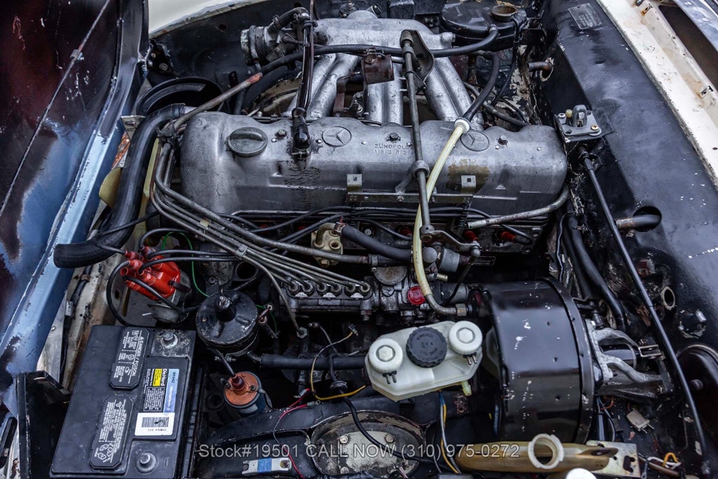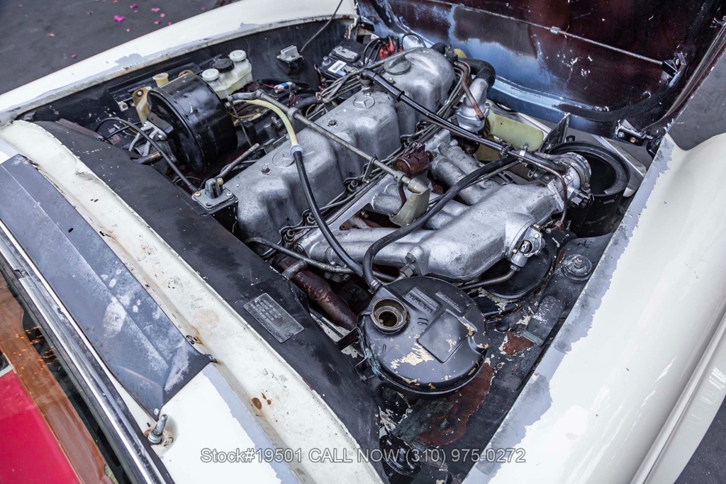 Equipped with an automatic transmission and an nline-six engine, along with a mechanical fuel injection, front-wheel disc brakes, power steering, black convertible soft top, body-color removable hardtop, chrome trim and bumpers, Goodyear tires, steel wheels with color-matched hubcaps, and a full-size spare tire in the trunk. Interior features include low-back bucket seats, a classic two-spoke white steering wheel with a chrome horn ring, and a center console.