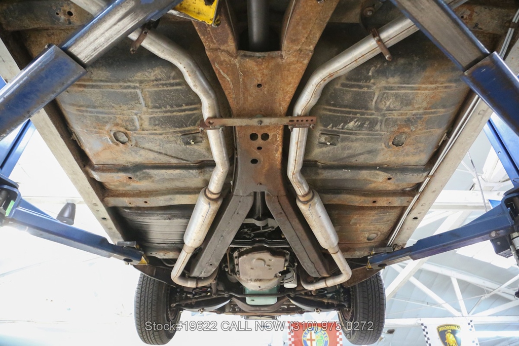 Inside, the cabin offers bucket seating, lap belts, an upgraded A/C compressor, power windows, analog clock, quarter windows, courtesy lighting, and a full-length center console, creating a refined and comfortable driving environment true to its era. It also retains factory-style details including finned wheel covers, steering wheel, and a complete trunk setup with jack and spare.