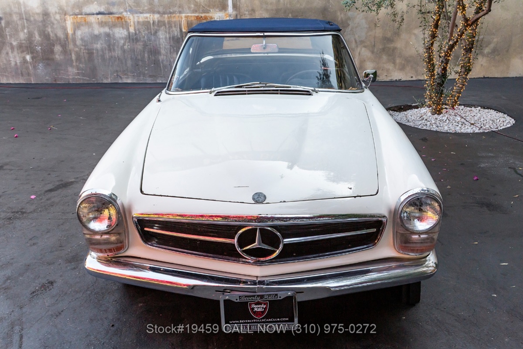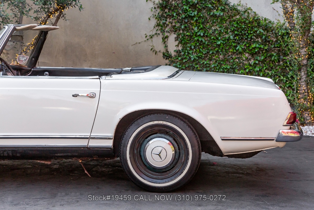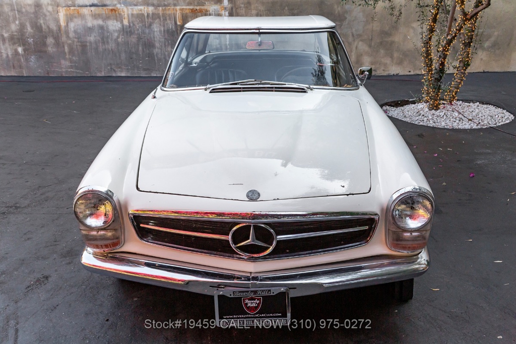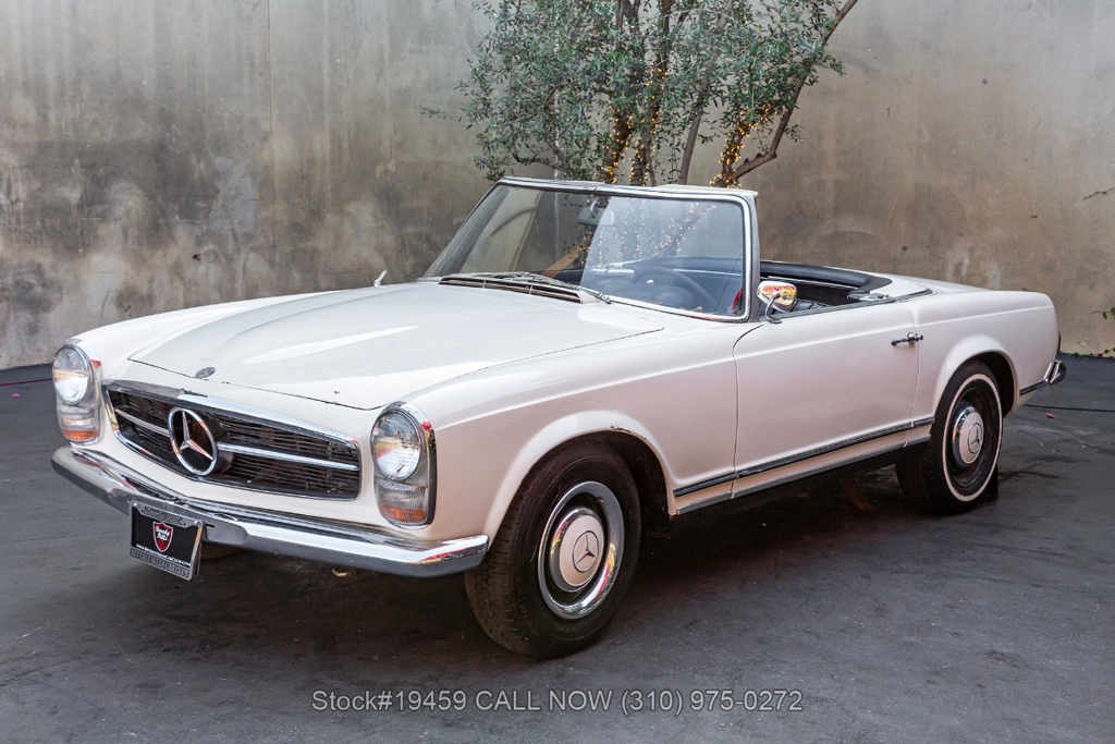 Introducing this 1964 Mercedes-Benz 230SL Pagoda with 2 tops finished in its factory color Papyrus White "Papyruswei" (717) with a black interior. The model is often called the Pagoda because of its distinctive concave hardtop roof design. It is one of the most recognized classic models from Mercedes-Benz, known for its clean styling and balanced driving experience.
