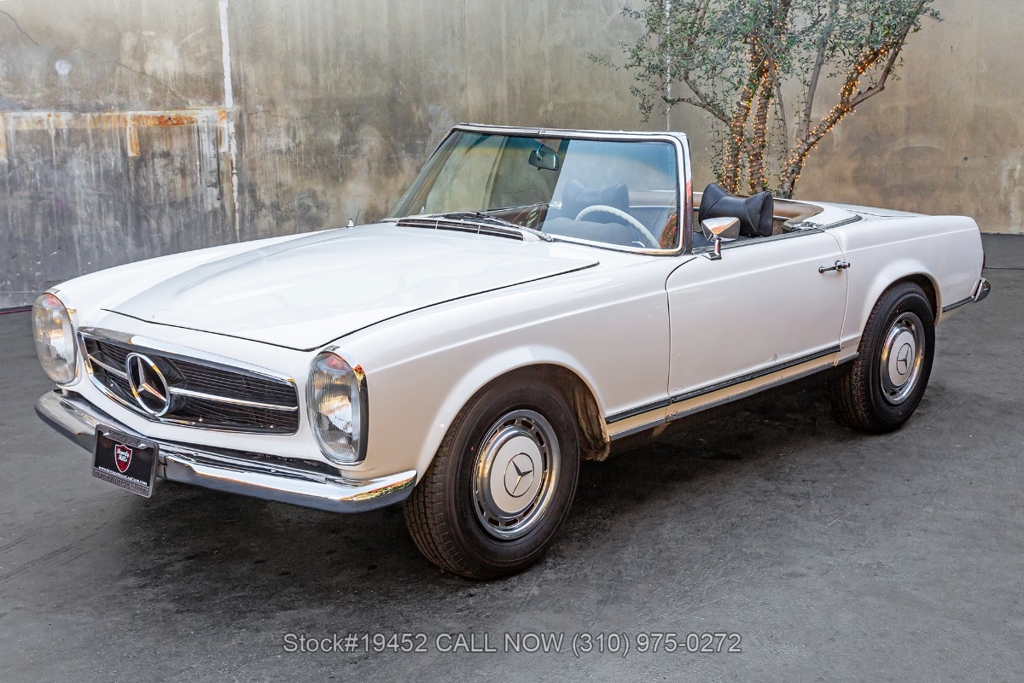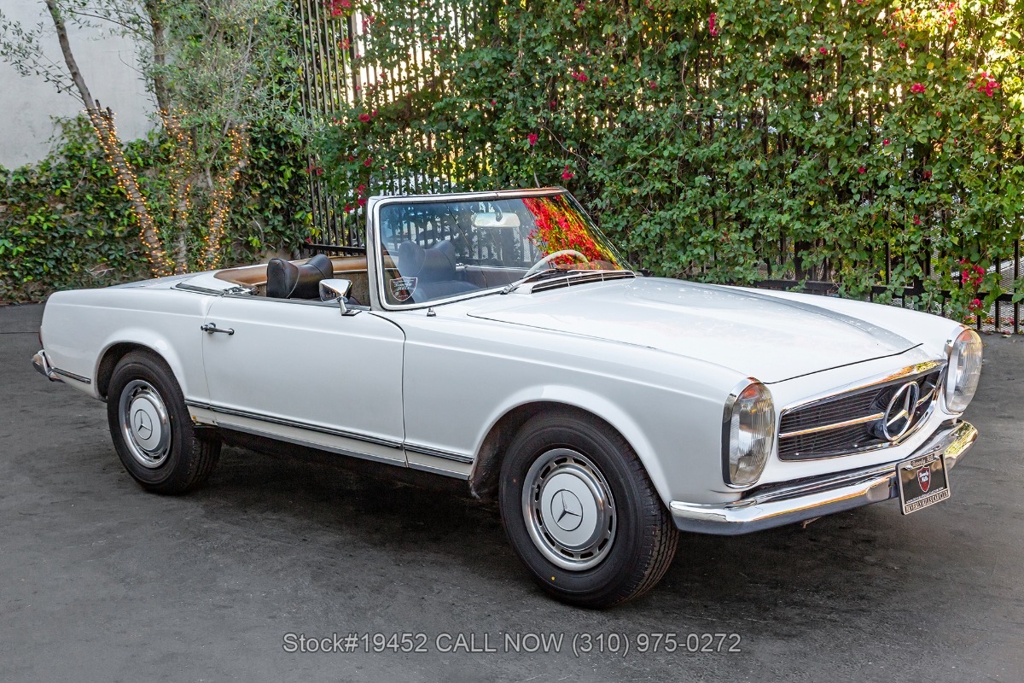 Introducing this 1965 Mercedes-Benz 230SL with 2 tops finished in Papyrus White combined with a cognac and black interior. Named for its iconic concave hardtop design, the Pagoda remains one of Mercedes-Benz's most celebrated classics, blending elegant styling with refined performance.