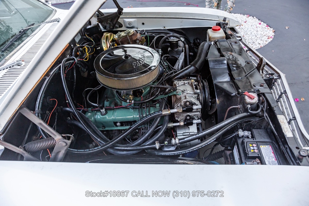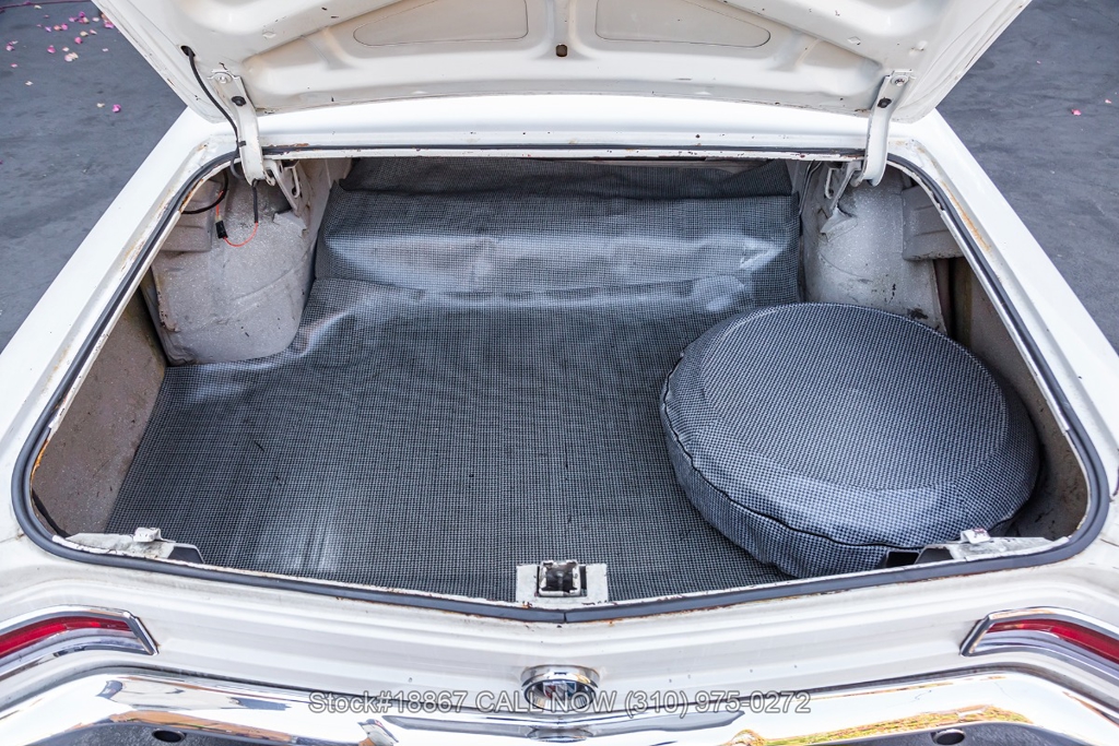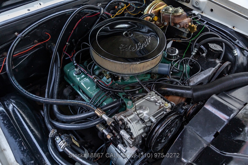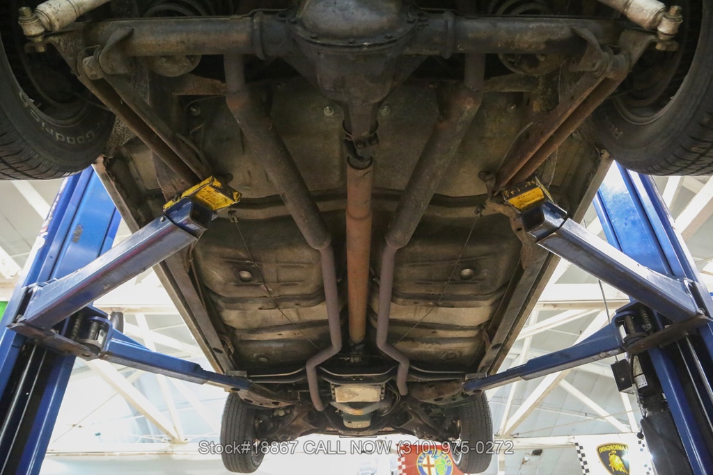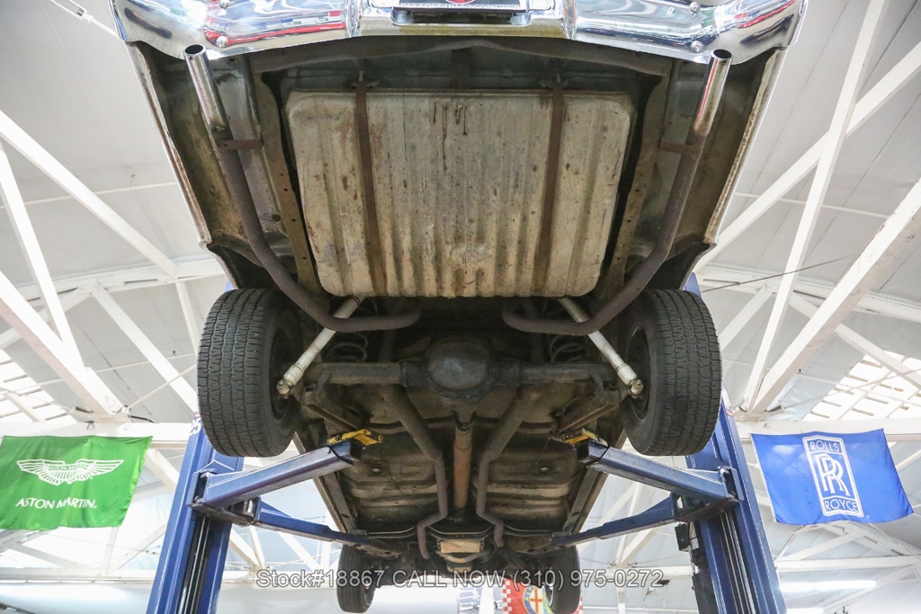 Equipped with an automatic transmission, V8 engine, Edelbrock AVS2 carburetor, power steering, front wheel disc brakes, rear drum brakes, dual exhaust outlets, chrome trim/bumpers, Grant Classic 3-spoke steering wheel, 14-inch chrome wheels, jack, and a full-size spare tire fitted in the trunk. Convenience features include air conditioning modification, vintage "Frigi King" under-dash air conditioner unit, comfortable bucket seating, lap belts, driver-side rearview mirror, quarter windows, a JVC stereo, and fender-mounted antenna.