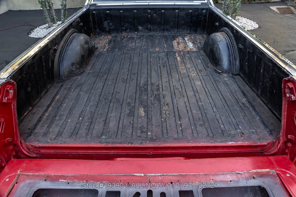 Under the hood, this example is powered by a V8 engine that is accompanied by a 4-barrel Holley carburetor and an automatic transmission. Additional equipment includes an upgraded aluminum radiator, a distinctive dual-scoop cowl hood, front-wheel disc brakes, power steering, quad exhaust outlet system, chrome bumpers, BFGoodrich tires, and 15-inch 5-spoke Rocket Racing wheels. Featured amenities include bucket seating, Grant GT steering wheel, dual-side rearview mirrors, a cargo bed, and a fender-mounted antenna. Note this classic car comes with a salvage title.