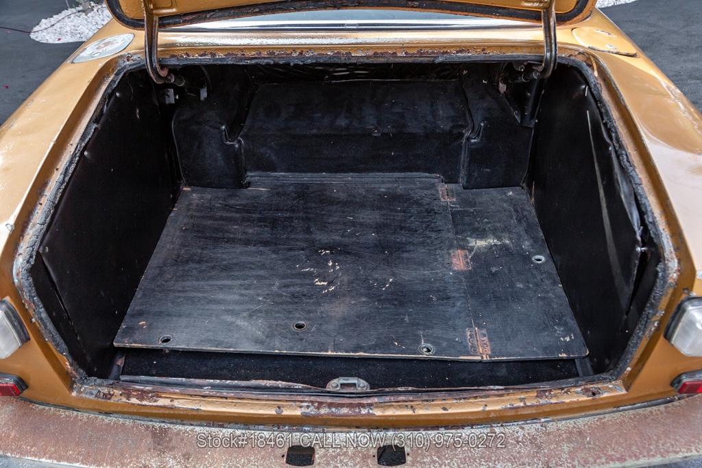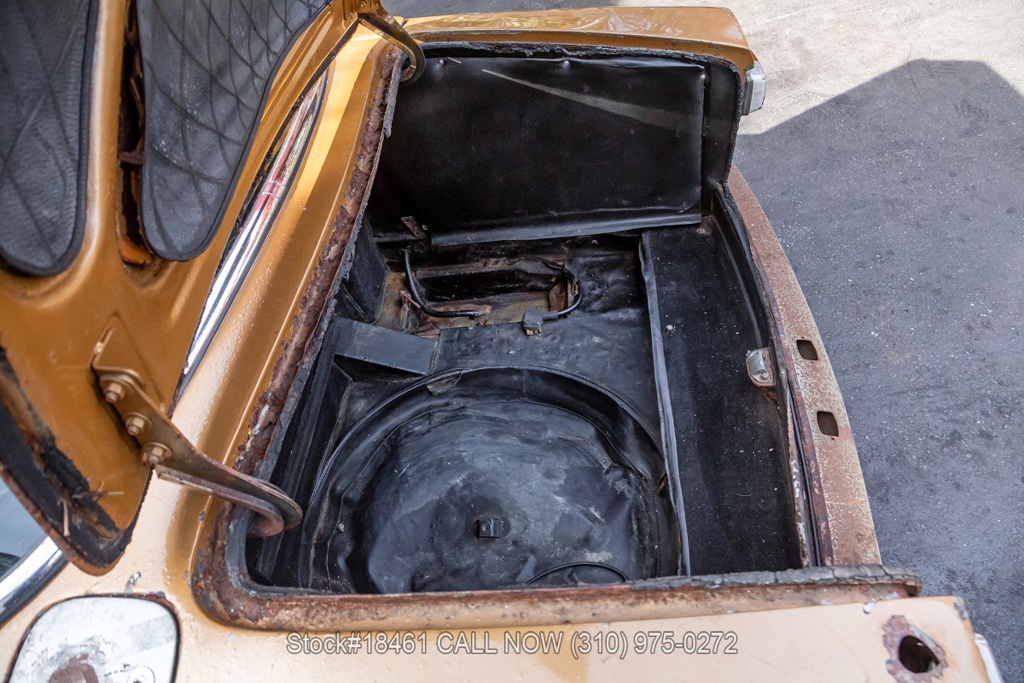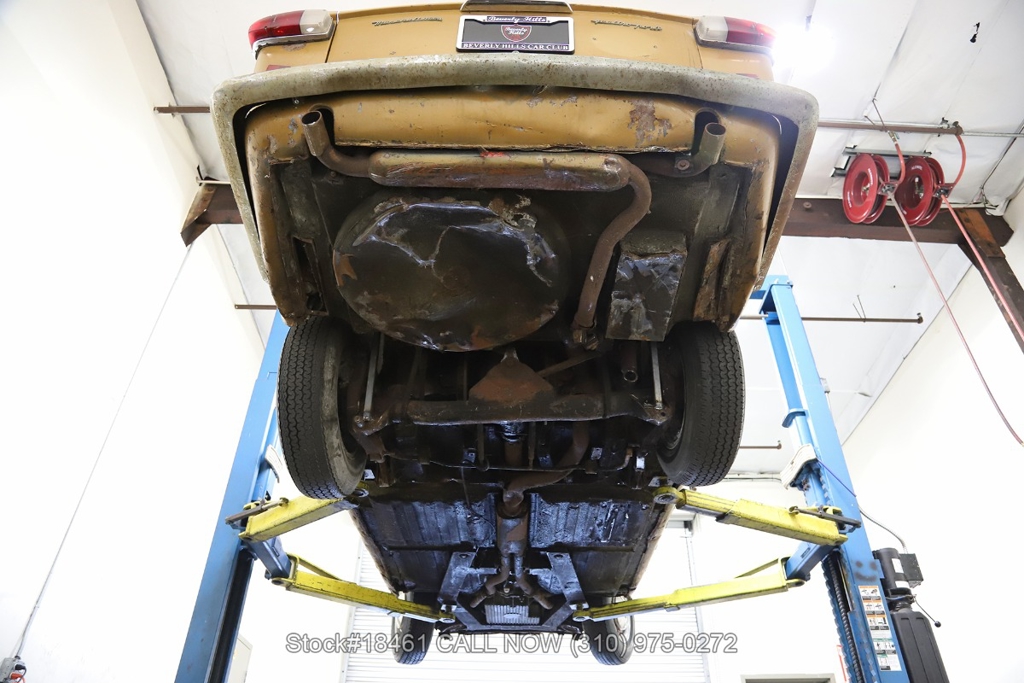 Equipped with a manual transmission, V8 engine, four-wheel disc brakes, dual exhaust outlets, chrome trim, chrome bumpers, Smith instrumentation, and a three-spoke wood steering wheel. Featured amenities include bucket seating, and toggle switches.