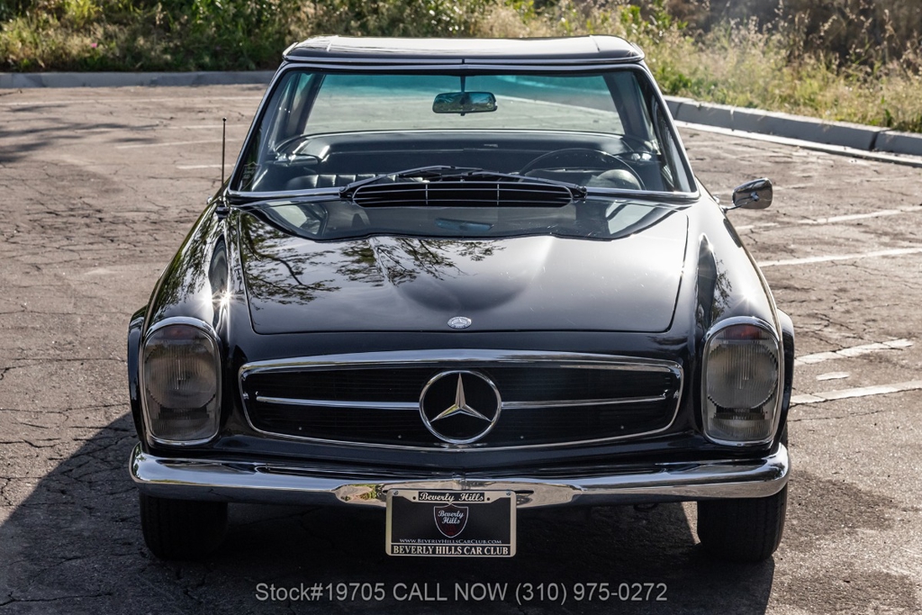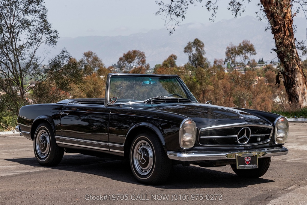Introducing this 1966 Mercedes-Benz 230SL with 2 tops finished in a triple black color combination. The model is often called the Pagoda because of its distinctive concave hardtop roof design. It is one of the most recognized classic models from Mercedes-Benz, known for its clean styling and balanced driving experience.
