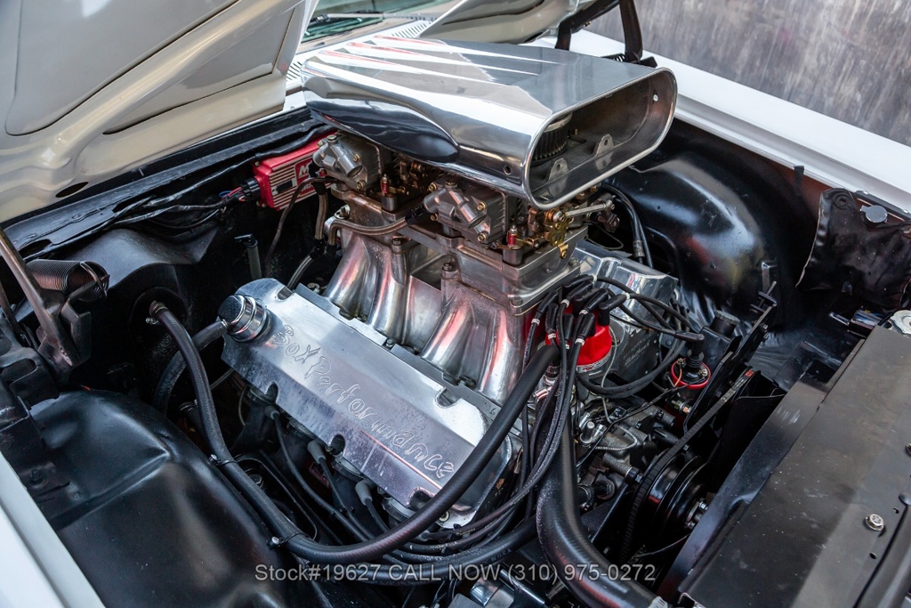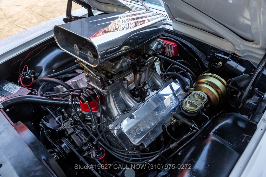 This Galaxie comes equipped with a V8 engine paired to an automatic transmission and features a range of performance-oriented upgrades, including dual Holley 4-barrel carburetors, an MSD electronic ignition system, and a high-rise aluminum intake manifold. Additional enhancements such as a high-performance aluminum radiator and four-wheel disc brakes contribute to improved cooling and stopping power, while power steering ensures a comfortable driving experience. The custom polished valve covers and dual exhaust system with polished tips add a distinctive touch under the hood and at the rear.