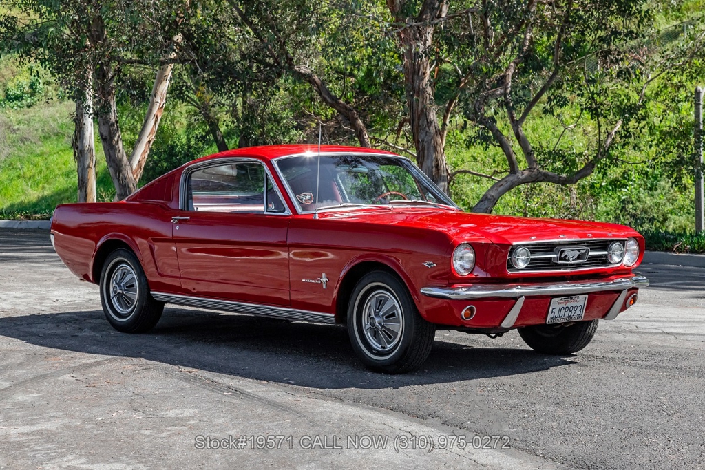 Introducing this 1966 Ford Mustang A-Code Fastback 2+2 a true icon of American automotive history. This classic muscle car is a testament to the 1960s era of automotive excellence, showcasing a sleek and elegant design that has captivated enthusiasts for decades. Finished in its factory color of Candyapple Red, this Mustang exudes a timeless charm that is both bold and sophisticated. The exterior is complemented by chrome accents that highlight its classic lines and iconic sloping roofline with rear quarter louvers. The interior features a matching color interior that provides a striking contrast to the exterior.