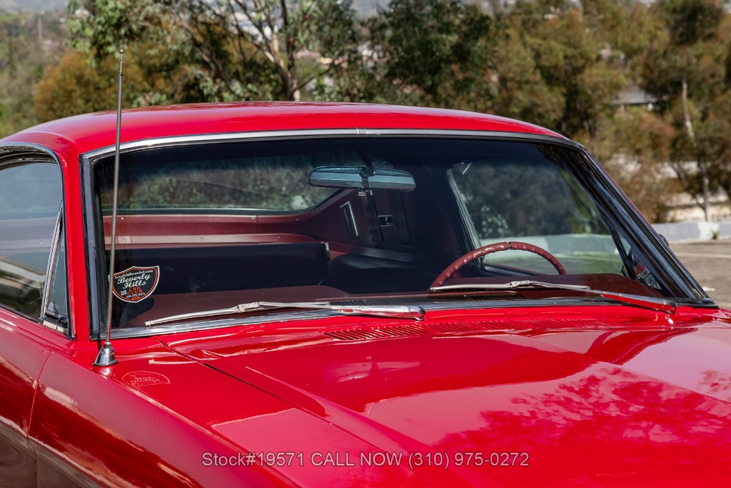 This Fastback comes with a range of convenience features, including air conditioning, a driver-side rearview mirror, vent windows, a glove box, courtesy lights, and a push-button interface. The fender-mounted antenna and dual exhaust outlets further enhance its classic look and sound. Inside, you'll find a pair of comfortable bucket seats and a three-spoke steering wheel that enhances the driving experience.