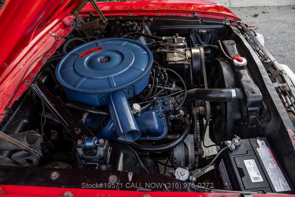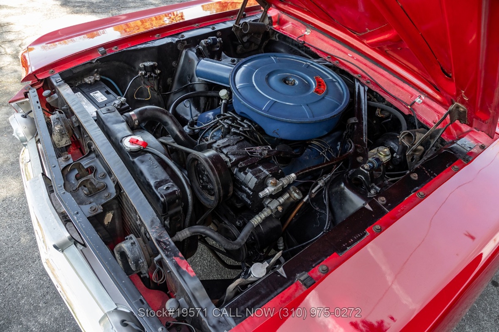 Under the hood, this Mustang is powered by a robust V8 engine paired with a four-barrel carburetor, delivering the performance and power that muscle car enthusiasts crave. The Cruise-O-Matic transmission offers an engaging driving experience, allowing you to fully appreciate the car's capabilities. This vehicle is equipped with drum brakes and power steering for a smooth and controlled ride. The 14-inch steel wheels with Michelin white-line tires and chrome wheel center caps add to its sporty appeal.