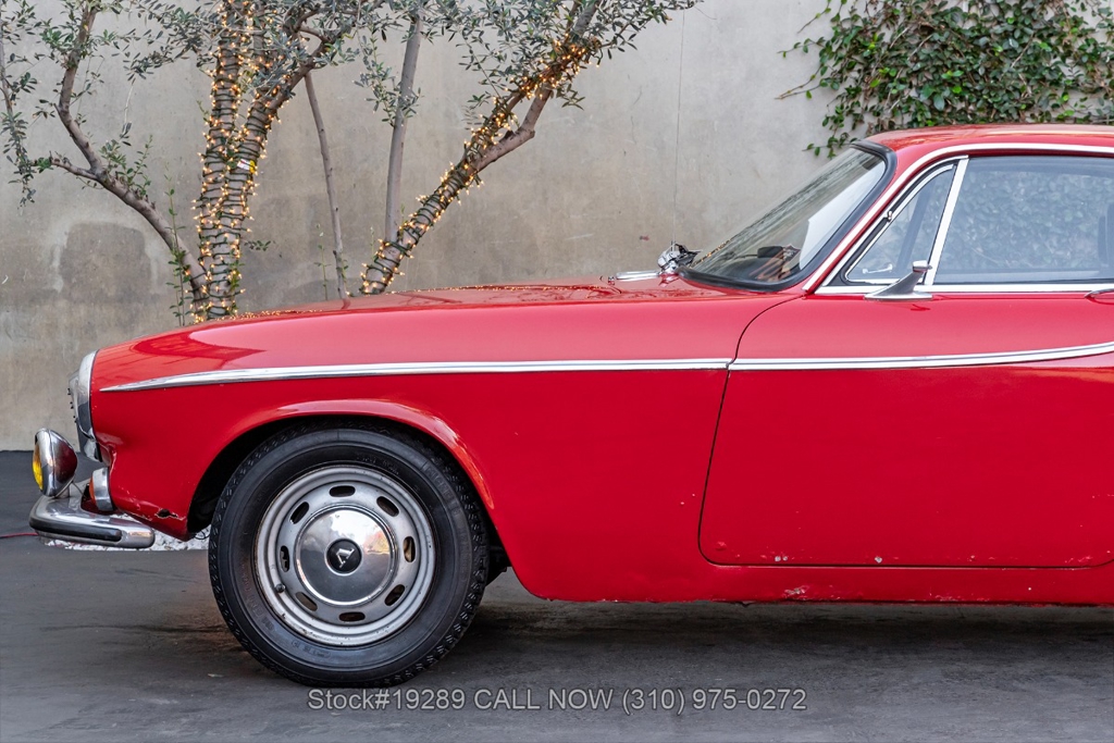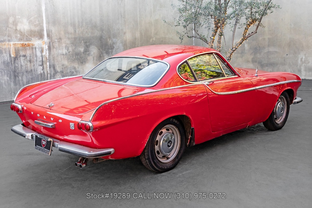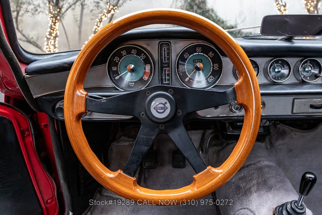 This Volvo is equipped with a 4-speed manual transmission paired with an inline-four engine featuring SU dual carburetors. Additional equipment includes front disc brakes, twin exhaust outlets, an aluminum dashboard, Smiths instrumentation, chrome exterior trim, 15-inch steel wheels, Volvo-branded hubcaps, and an onboard jack. Convenience features consist of manual-crank windows, 4-spoke steering wheel, a period-correct Grundig radio, and a fender-mounted antenna, all contributing to its authentic vintage character.
