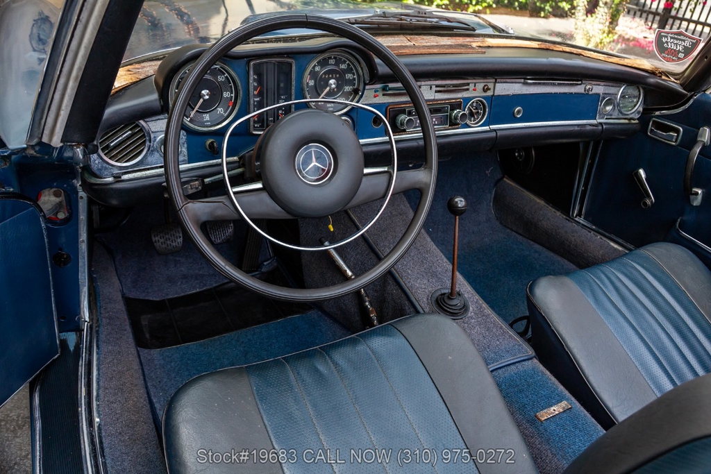 Introducing this 1967 Mercedes-Benz 250SL 4-Speed with 2 tops, a timeless roadster that blends elegant design with classic German engineering. Finished in medium blue and complemented by a two-tone blue interior, this example offers a bold yet sophisticated presence. Equipped with both a body-color removable hardtop and a convertible soft top. This example comes out of long-term California ownership and retains a blue license plate. Also accompanied by a small California pink slip dating back to 1987, adding a bit of early documentation to its history.