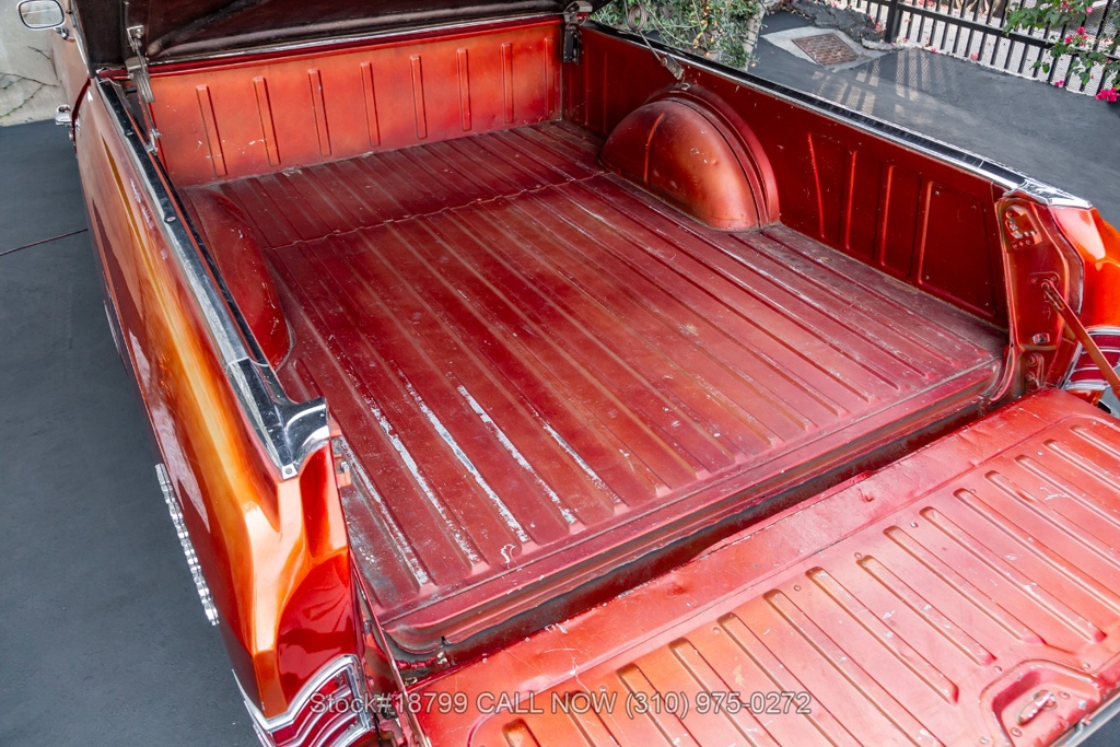 Under the hood, this example is powered by a 283ci V8 engine that is accompanied by a 2-barrel JET Rochester carburetor, and an automatic transmission. Additional equipment includes a dual exhaust outlet system, chrome bumpers, Autometer instrumentation, stainless steel beauty rings, and 15-inch steel wheels with Chevrolet Motor Division hubcaps. Featured amenities include split bench seating, air conditioning, 3-spoke steering wheel, analog clock, dual-side rearview mirrors, cargo bed, and a very convenient retractable hard Tonneau-style cover.