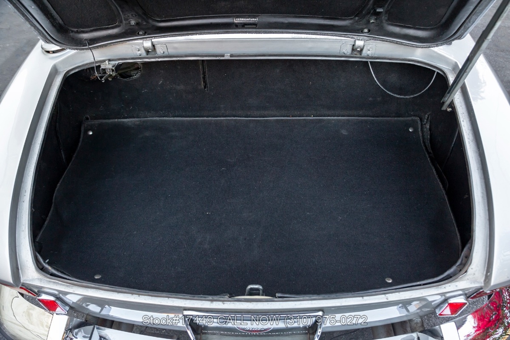 Equipped with a 5-speed manual gearbox, numbers-matching V-12 engine, triple Weber carburetors, four-wheel disc brakes, Veglia instrumentation, quad exhaust tips, dual head-lights, chrome trim/bumpers, Carello headlights with chrome rings, Altissimo front fog lights, interior wood trim, Michelin tires, 15-inch alloy wheels with curved eared knock-offs, a jack, and a full-size spare tire fitted in the trunk. Convenience features include power windows, pop-out quarter windows, lockable glove box, cigar lighter with an ashtray, center console, rocker switches, courtesy lights, AM/FM radio, and a vintage Talbot Berlin-branded side mirror.