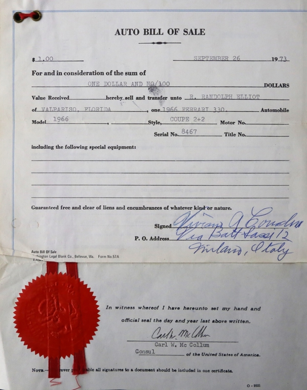 Once full payment is received, the Seller will provide clear title, Bill of Sale and additional Department of Motor Vehicle forms to you for signature. The forms must be completed before the Automobile is shipped or made available to you.