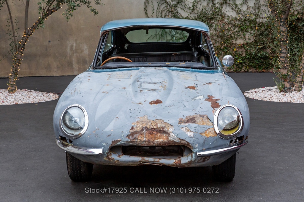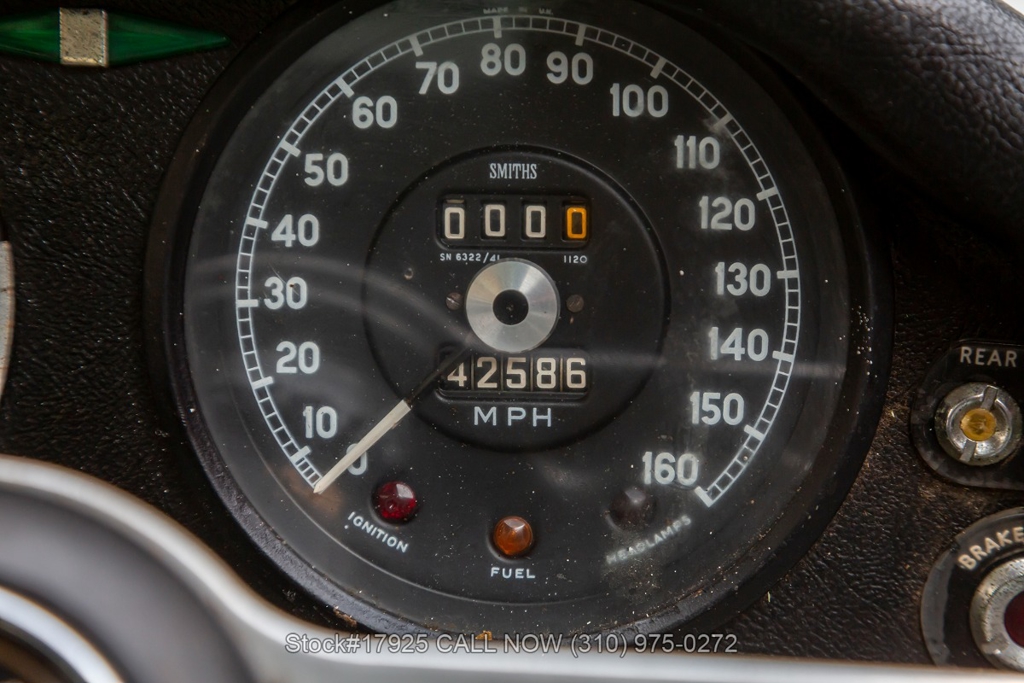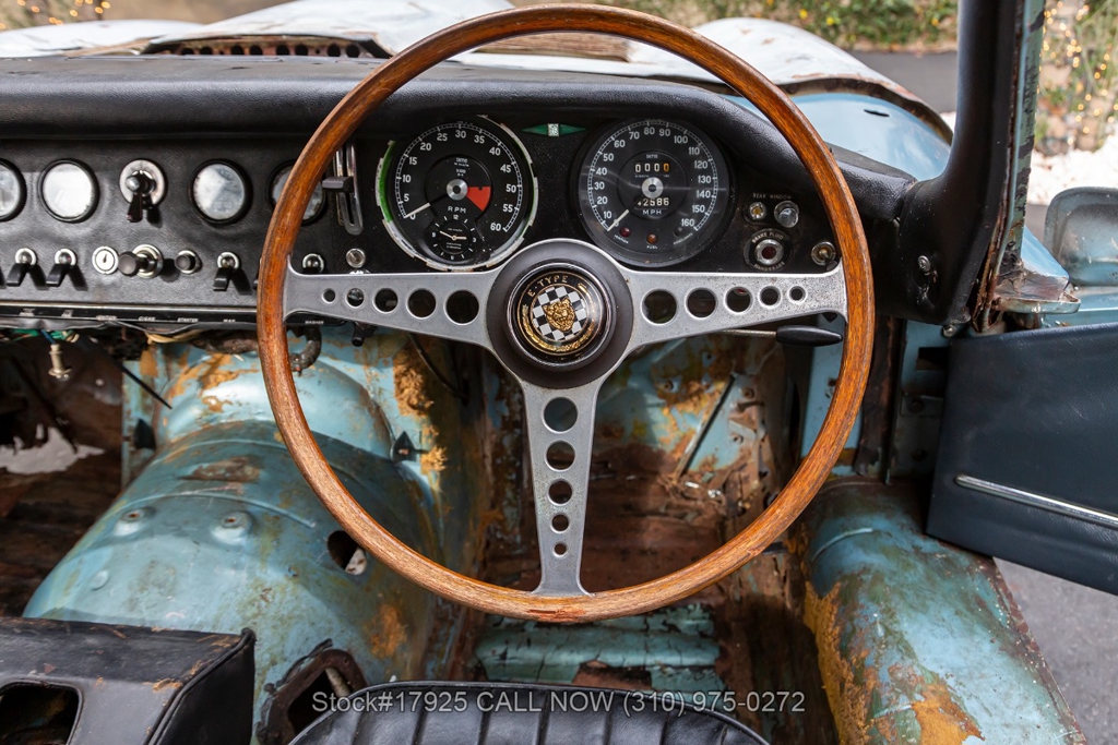 Equipped with a 4.2L inline-six engine, three S.U carburetors, front-wheel disc brakes, covered headlights, Lucas branded taillights, Smith/Lucas instrumentation, bonnet louvers, Michelin white-line tires and 15-inch wire wheels with knock-off spinners. Convenience features include bucket seating, 3-spoke wood steering wheel, toggles switches, analog clock, pop-out quarter windows, and a glove compartment. Note this particular Jaguar XKE was originally manufactured as a left-hand-drive model and has been converted into a right-hand-drive configuration, adding a unique touch.
