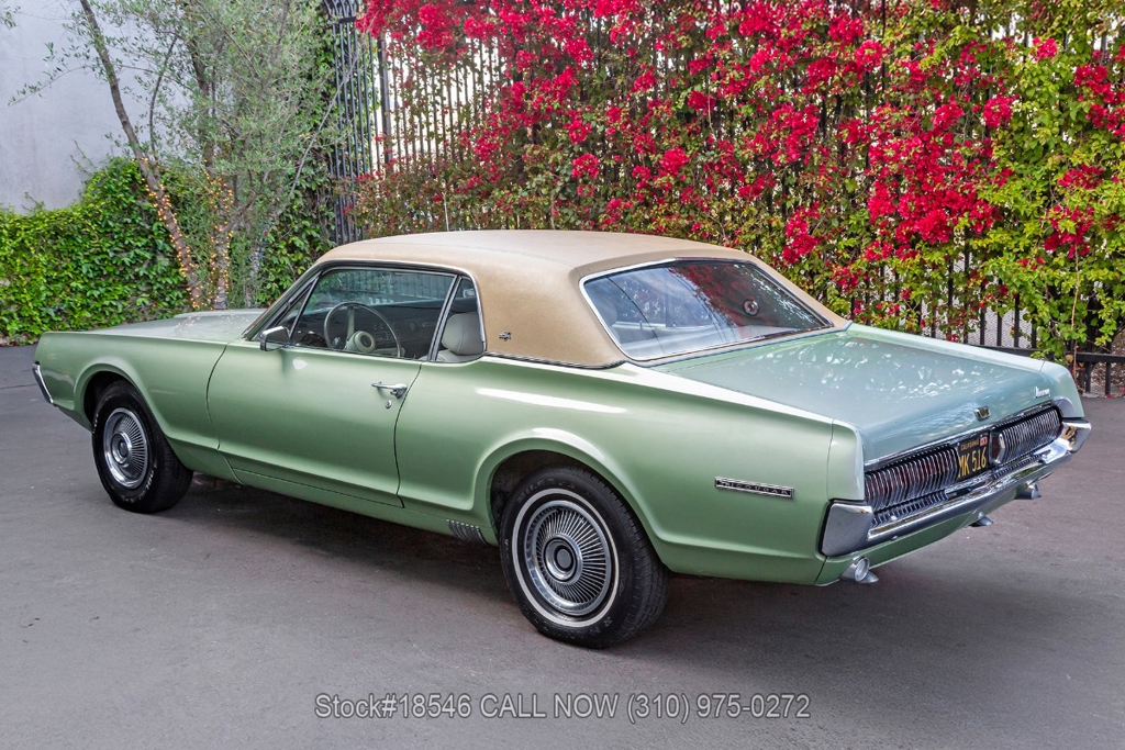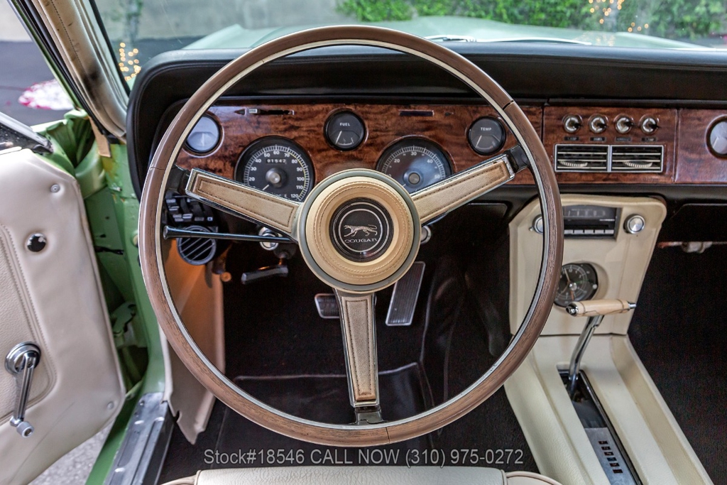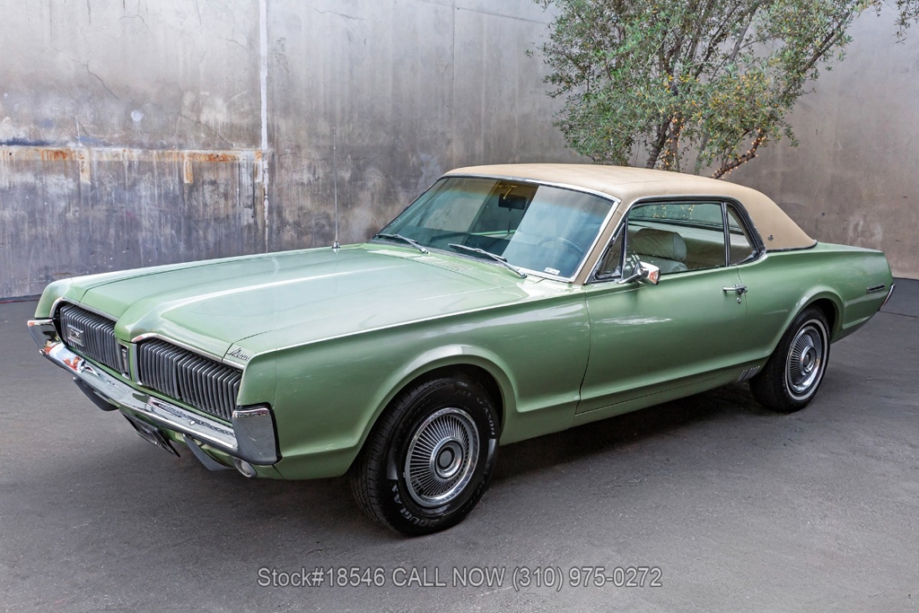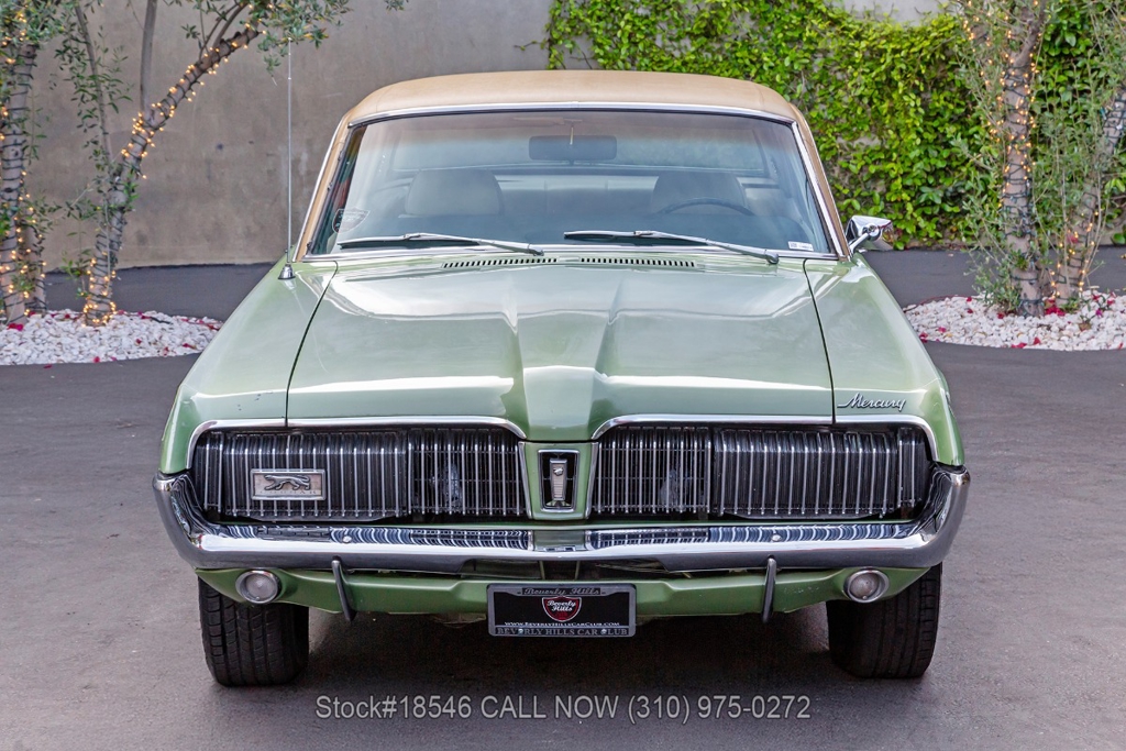 Introducing this 1967 Mercury Cougar XR7 that is finished in a Medium Lime Metallic exterior color complemented by its chrome trim and beige interior. This American classic boasts a California black license plate, showcasing its West Coast roots.