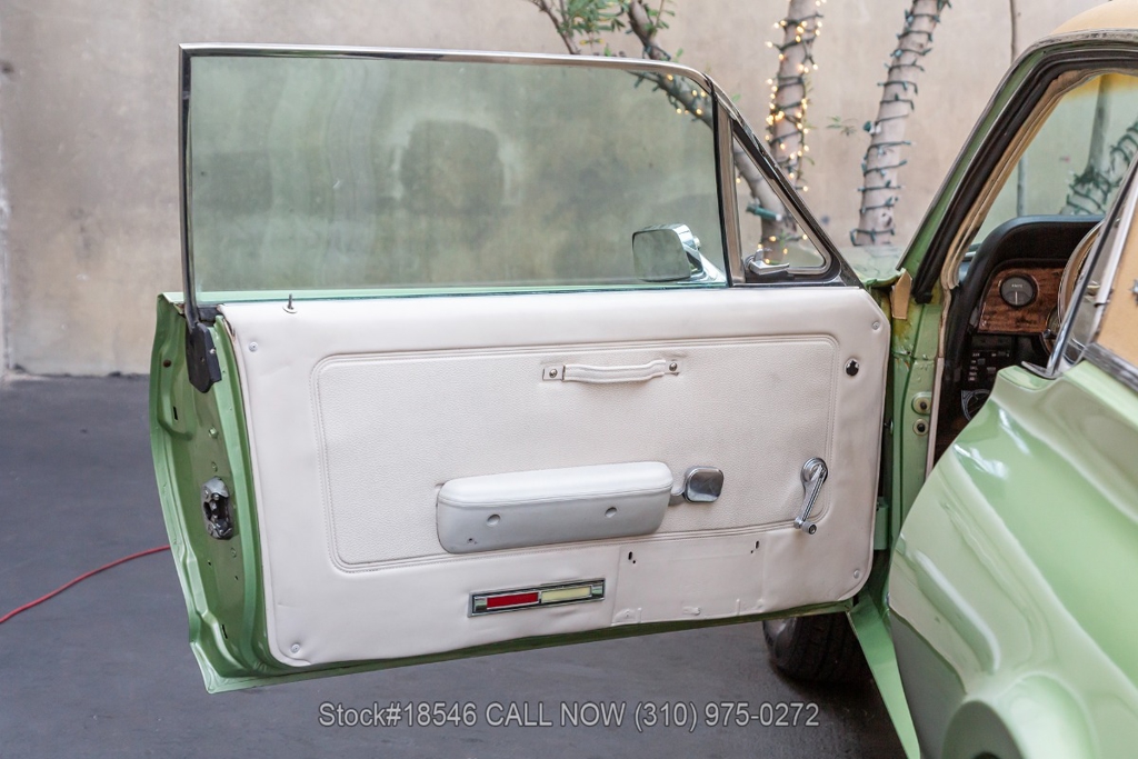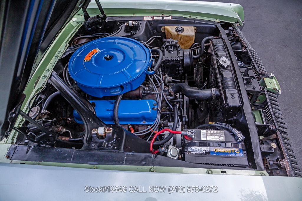 Equipped with an automatic transmission, V8 engine, 4-barrel carburetor, front-wheel disc brakes, 3-spoke steering wheel, chrome bumpers, and 14-inch steel wheels. Step inside the cabin, and you'll find buckets seating, retro radio, and dual-side rearview mirrors. Featured amenities include vent windows, analog clock, and quarter-windows.