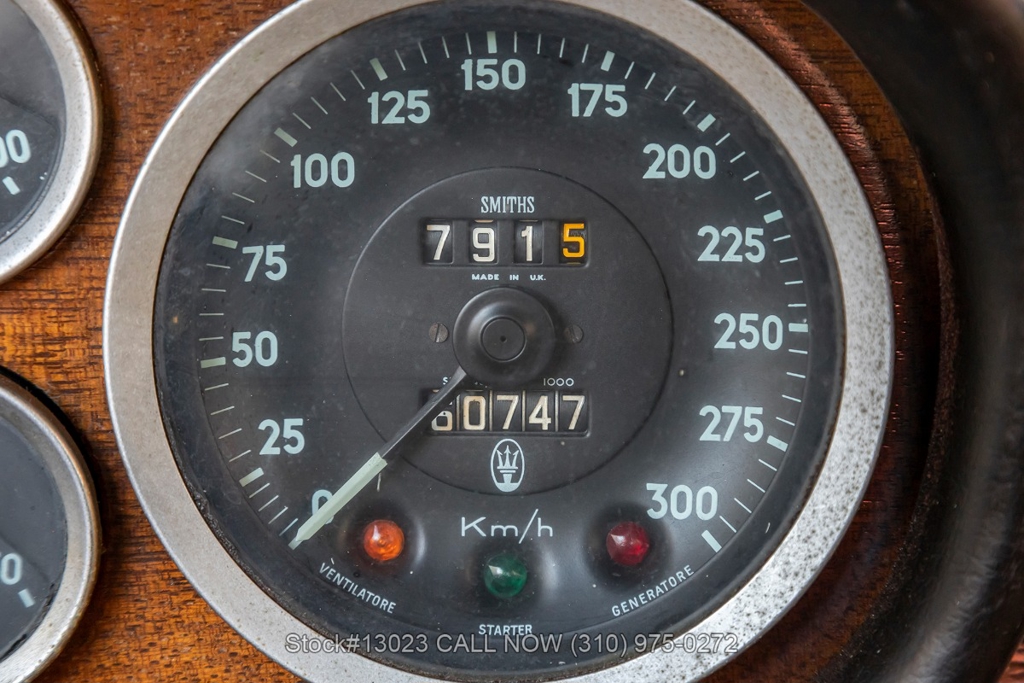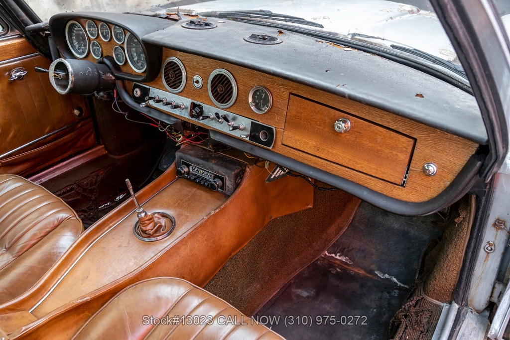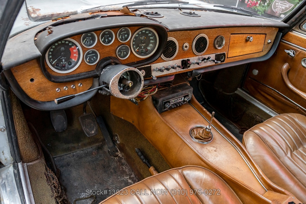 Equipped with a manual transmission, V8 engine, Smiths instrumentation, four-wheel disc brakes, dual exhaust outlets, chrome trim/bumpers, slated grill, quad headlights, and a fender-mounted antenna. Featured amenities include air conditioning, power windows, toggle switches, dual-side rearview mirrors, glove compartment, analog clock, and sun visors.