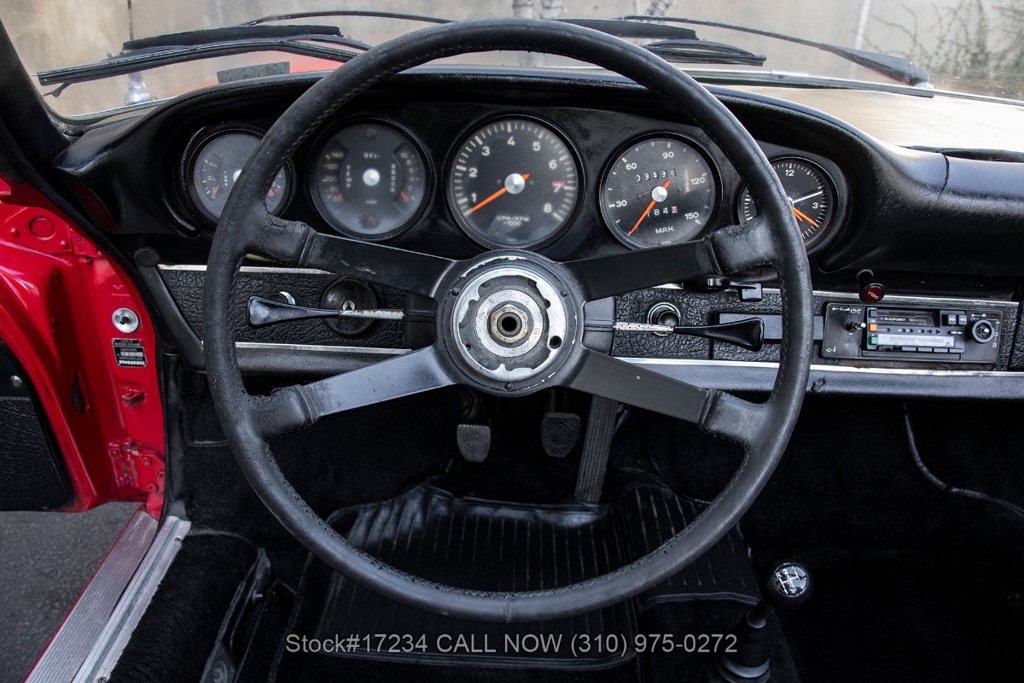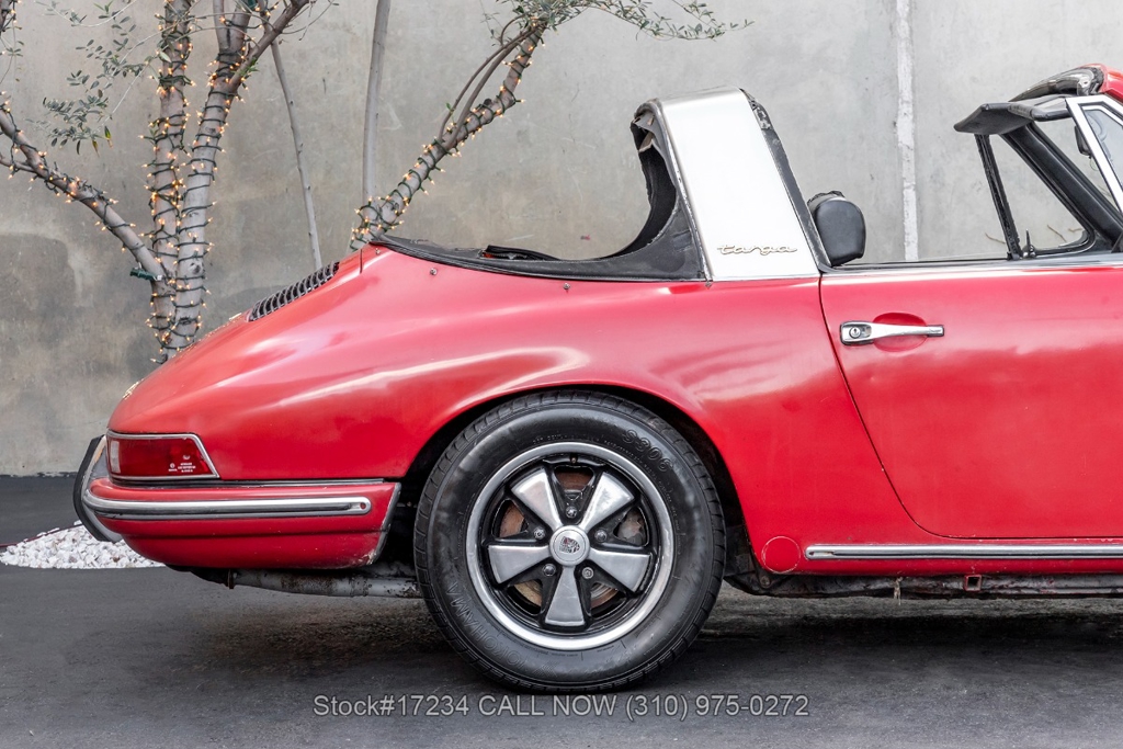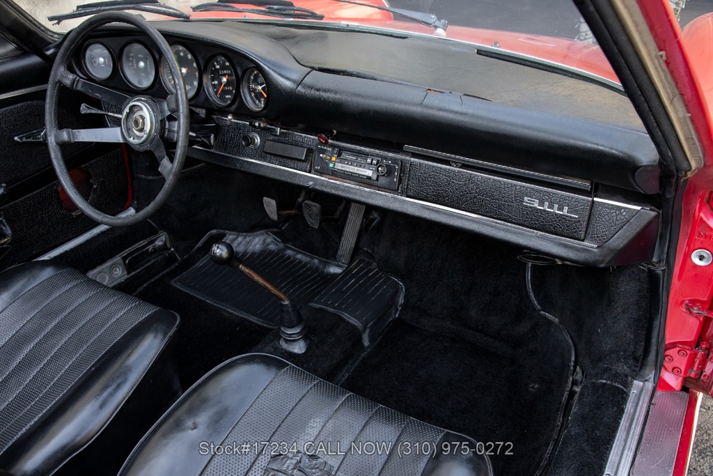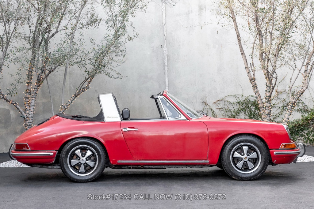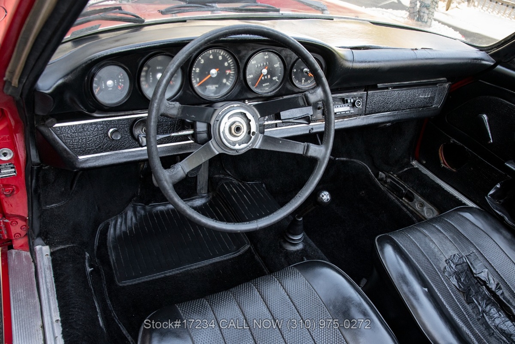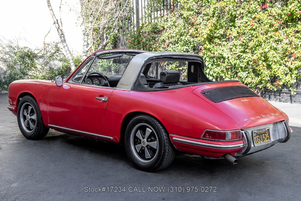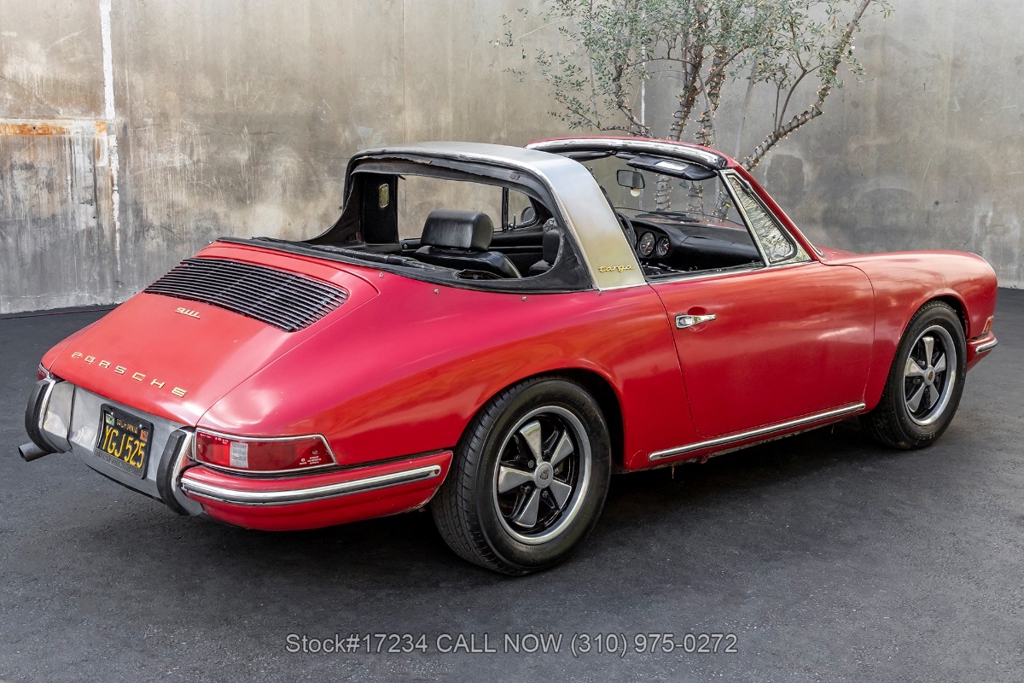 Introducing this rare 1968 Porsche 911L Soft Window Targa that is finished in its factory color scheme of Polo Red (6802) combined with a Black Schwarz interior. Equipped with a 5-speed manual transaxle, air-cooled 2.0-liter flat-six engine, Weber dual carburetors, VDO instrumentation, four-wheel disc brakes, single exhaust outlets, chrome headlight rings, removable roof panel, Targa bar, foldaway plastic rear soft window, four-spoke steering wheel, fender-mounted antenna, courtesy lights, cigar lighter with an ashtray, manual-crank windows, chrome trim, Fuchs-style wheels, and a full-size spare tire fitted in the front trunk. This particular example holds a special place in automotive history as a California car, having spent decades basking in the warm sunshine of the Golden State. As a project car, this Soft Window Targa offers an exciting opportunity for enthusiasts to restore and customize it to their exact specifications. For $59,950