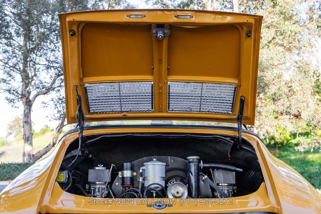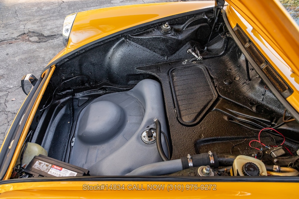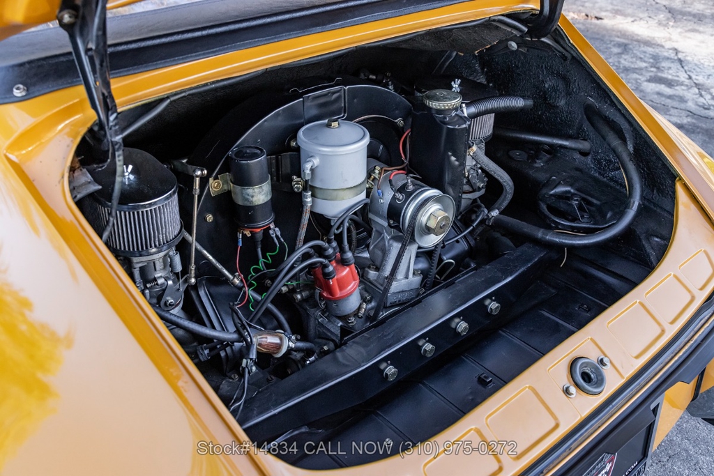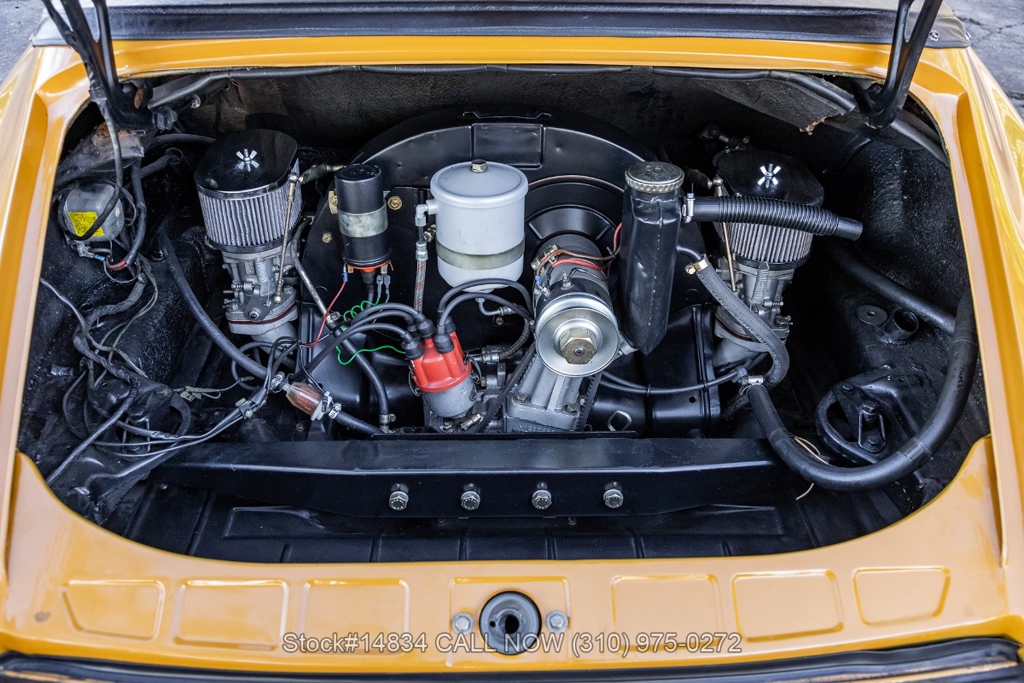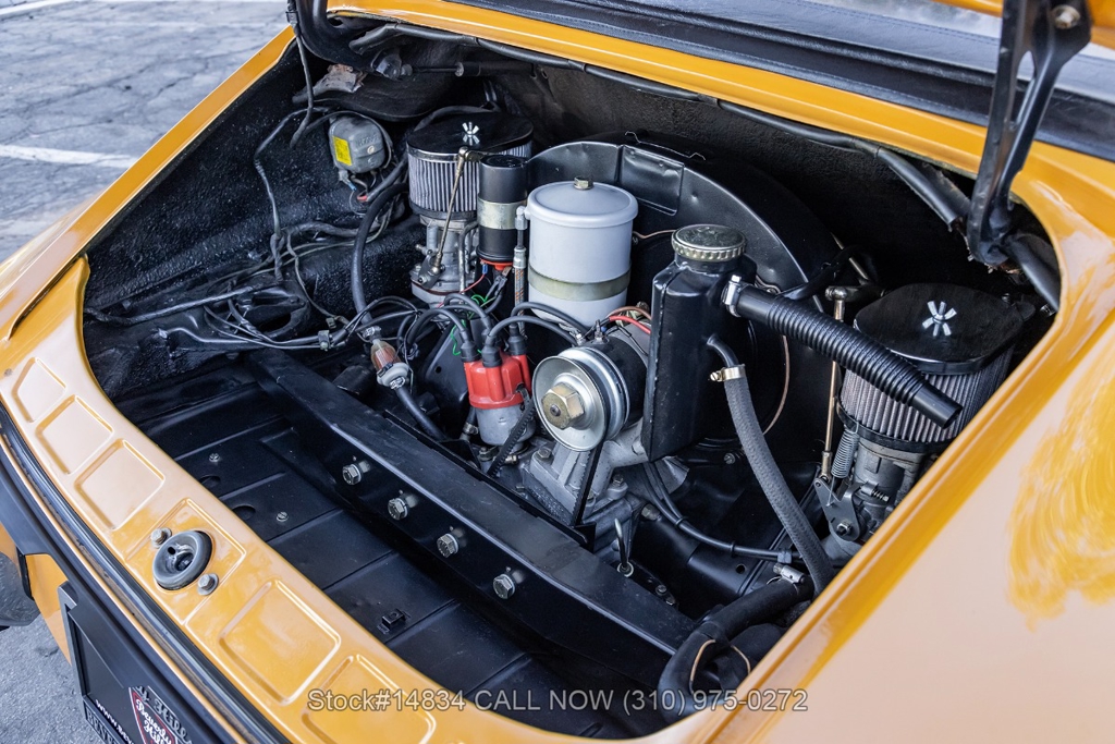 Equipped with a 5-speed manual transmission, flat-four engine, dual Weber carburetors, four-wheel disc brakes, VDO instrumentation, rear bumperettes, 4-spoke steering wheel, chrome trim, headlight chrome rings, removable black roof panel, Targa bar, foldaway plastic rear soft window, 15-inch steel wheels, Michelin tires, and a spare tire fitted in the front trunk. Convenience features include bucket seating, floor-mounted antenna, driver-side rearview mirrors, analog clock, and a Pioneer radio.