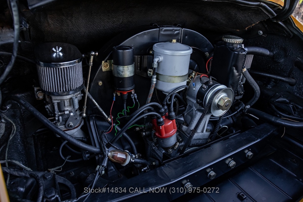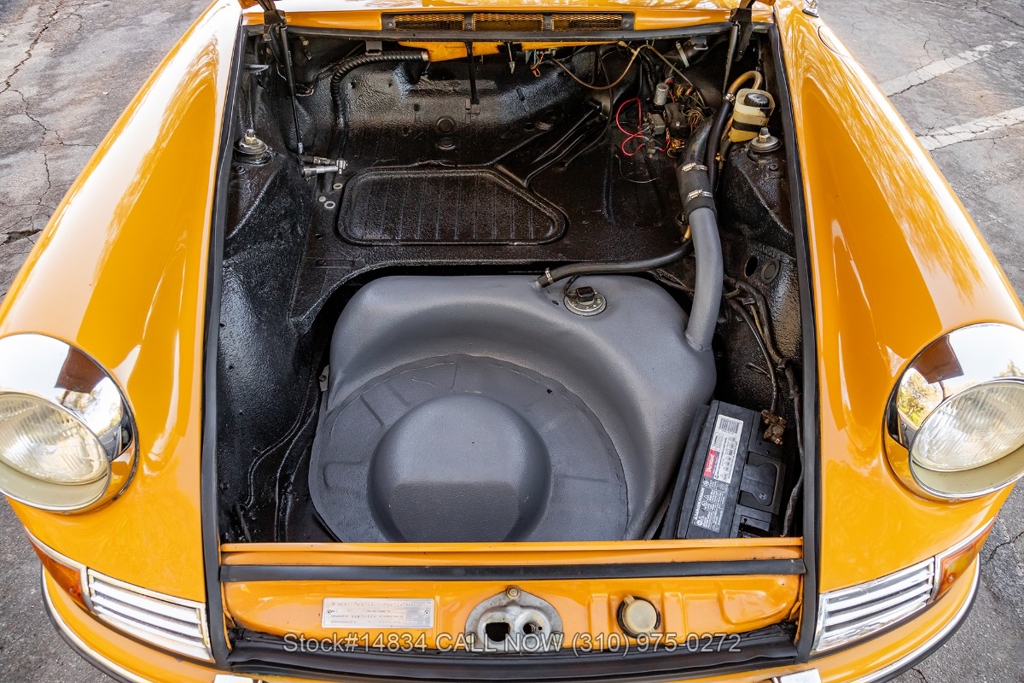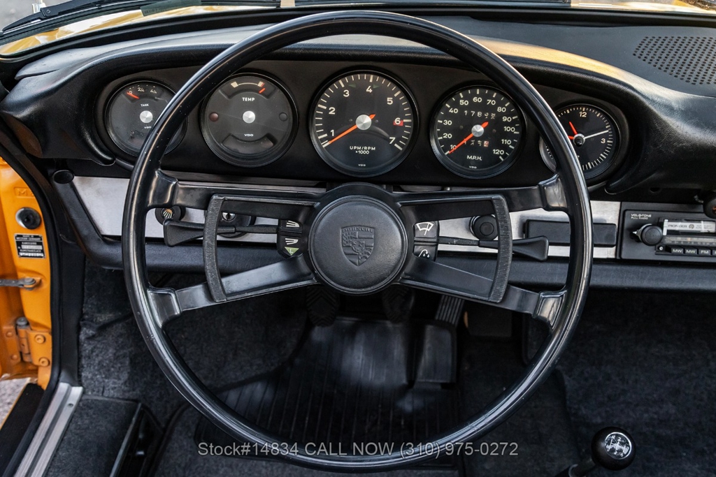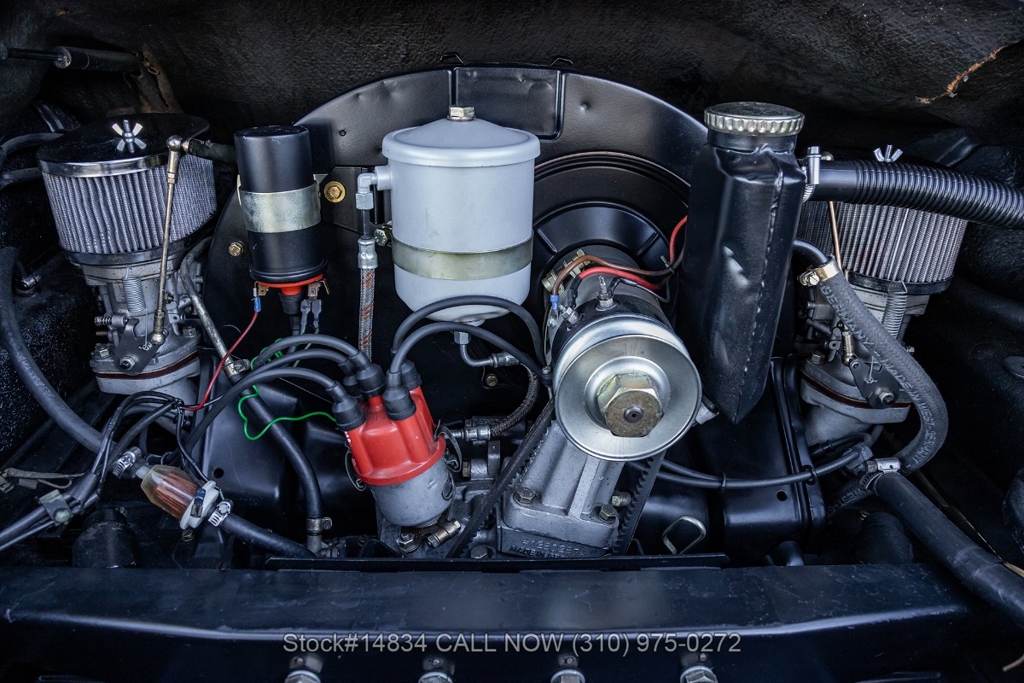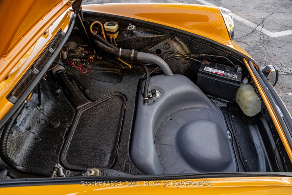 Equipped with a 5-speed manual transmission, flat-four engine, dual Weber carburetors, four-wheel disc brakes, VDO instrumentation, rear bumperettes, 4-spoke steering wheel, chrome trim, headlight chrome rings, removable black roof panel, Targa bar, foldaway plastic rear soft window, 15-inch steel wheels, Michelin tires, and a spare tire fitted in the front trunk. Convenience features include bucket seating, floor-mounted antenna, driver-side rearview mirrors, analog clock, and a Pioneer radio.