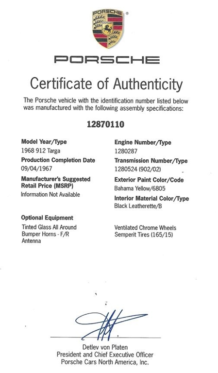 Introducing this extremely original 1968 Porsche 912 Soft Window Targa featured with matching numbers (digital copy of the Porsche Certificate of Authenticity included). Finished in its factory color scheme of Bahama Yellow (6805) complemented with a Black interior. To further enhance the exterior, this Targa comes with a convertible soft-top.