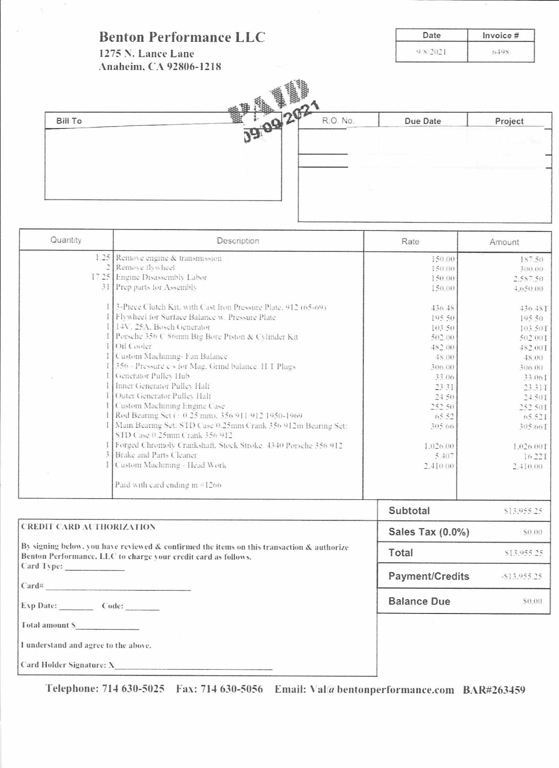 Once full payment is received, the Seller will provide clear title, Bill of Sale and additional Department of Motor Vehicle forms to you for signature. The forms must be completed before the Automobile is shipped or made available to you.