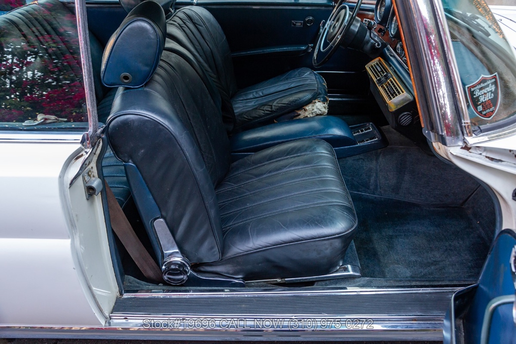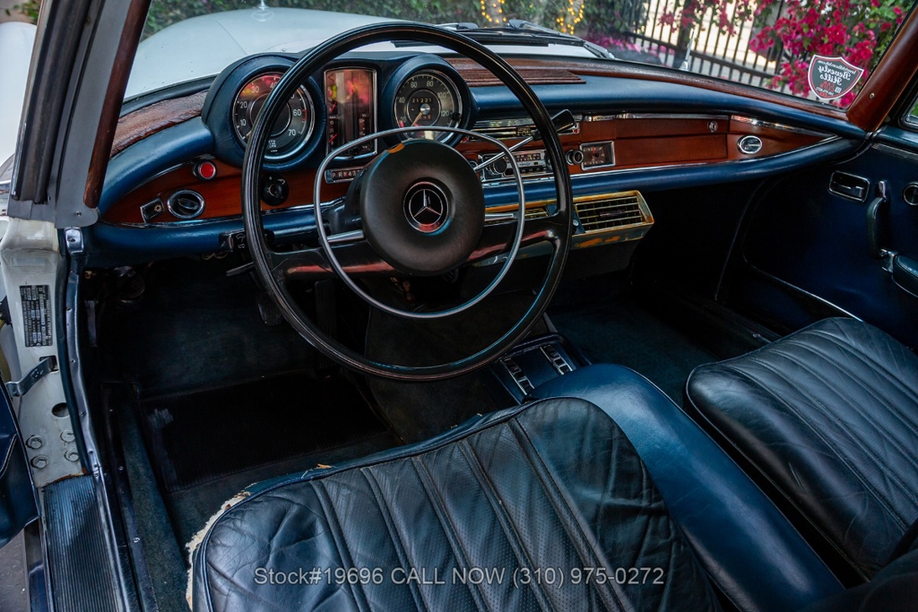 Introducing this 1969 Mercedes-Benz 280SE Coupe finished in white over a dark blue interior, an understated color combination that suits the model's elegant design.