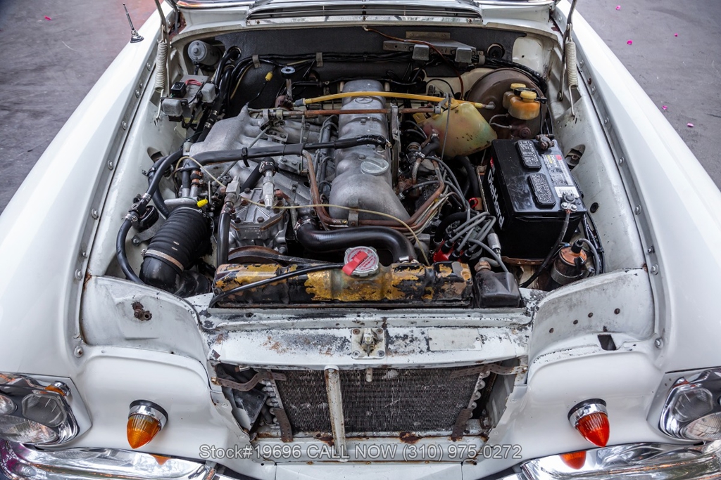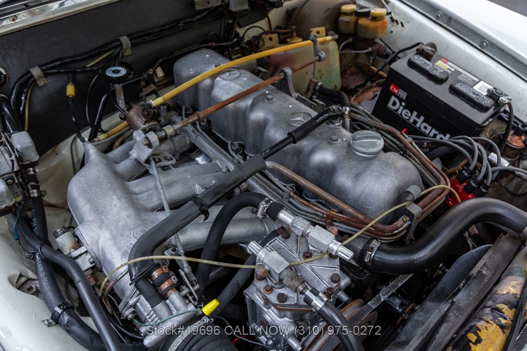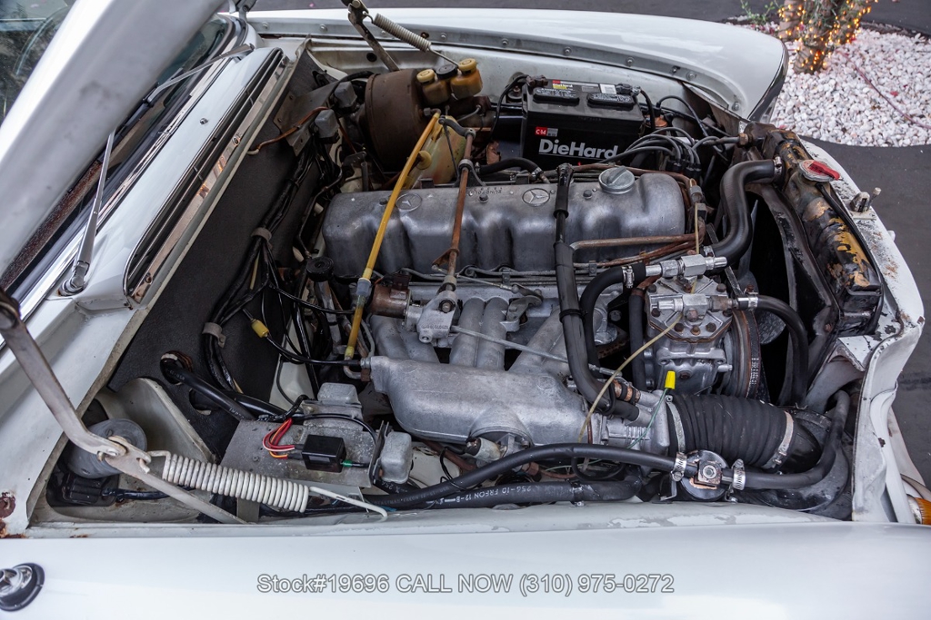 Equipped with a fuel-injected M130 2.8-liter inline-six engine, automatic transmission, power-assisted four-wheel disc brakes, power steering, and air conditioning. Additional features such as power windows, classic VDO instrumentation, AM/FM radio, wood trim accents, chrome bumpers, and 14-inch steel wheels with Mercedes-Benz hubcaps contribute to its period-correct presentation. The distinctive wrap-around rear window remains one of the defining styling elements of the W111 series.