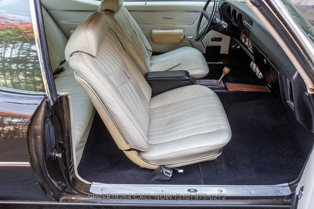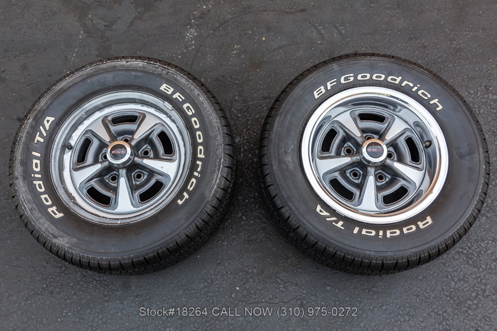 This California black-license plate powered by a potent V8 engine that is paired with a Holley 4-barrel carburetor and a smooth automatic transmission. Additional equipment includes quadruple headlights, chrome bumpers, twin-scoop hood, dual exhaust outlets, front wheel disc brakes, Autometer instrumentation, GTO side badging, jack, and two spare tires. Rolling on front 14-inch/rear 15-inch Pontiac Rally II wheels. Step inside the cockpit and you'll find comfortable bucket seating with head rests, power windows, 3-spoke steering wheel, Delco stereo, center console, and a fender-mounted antenna.